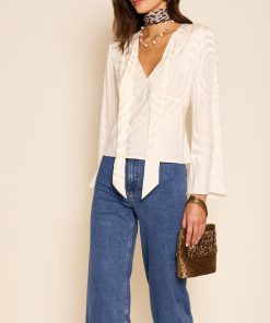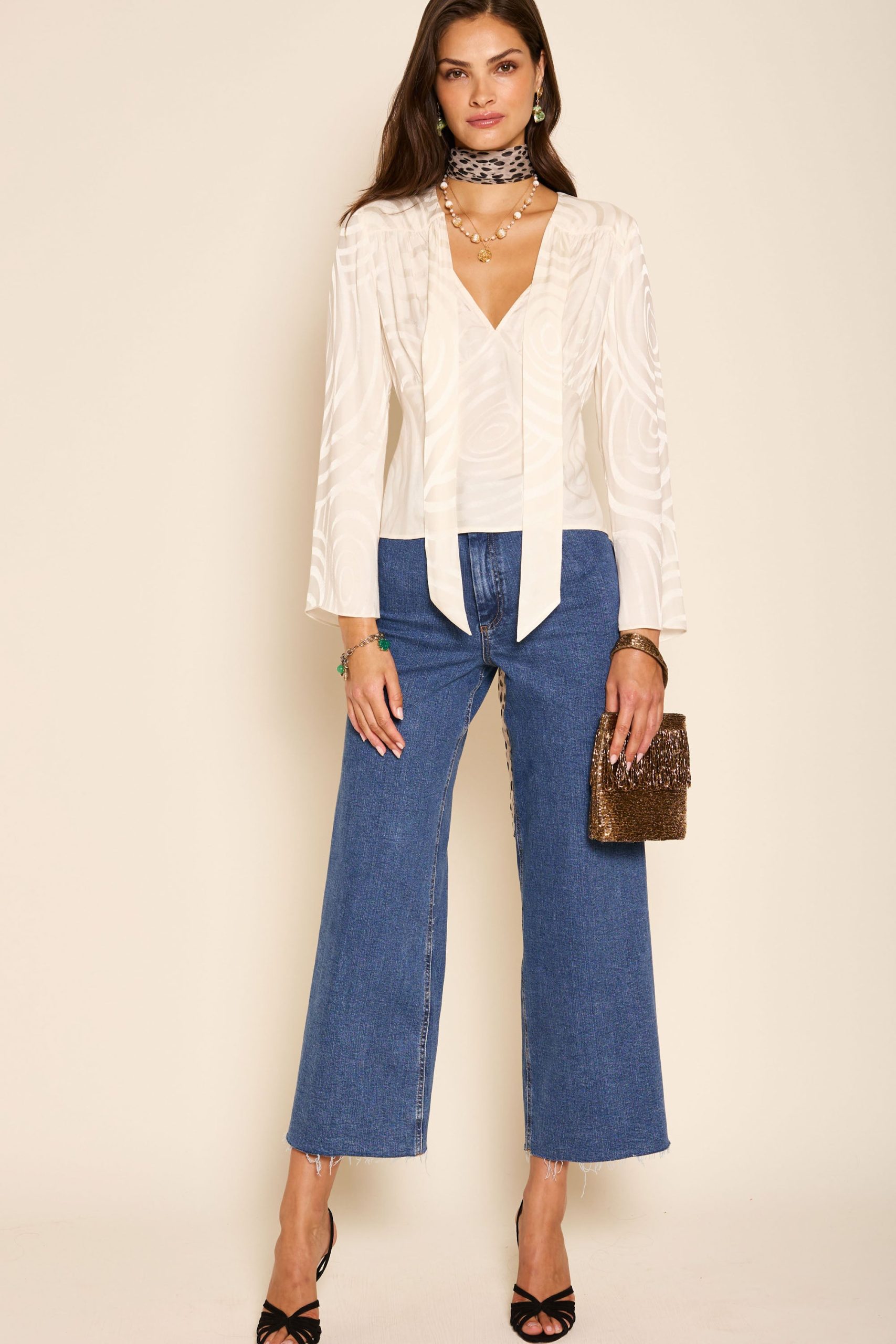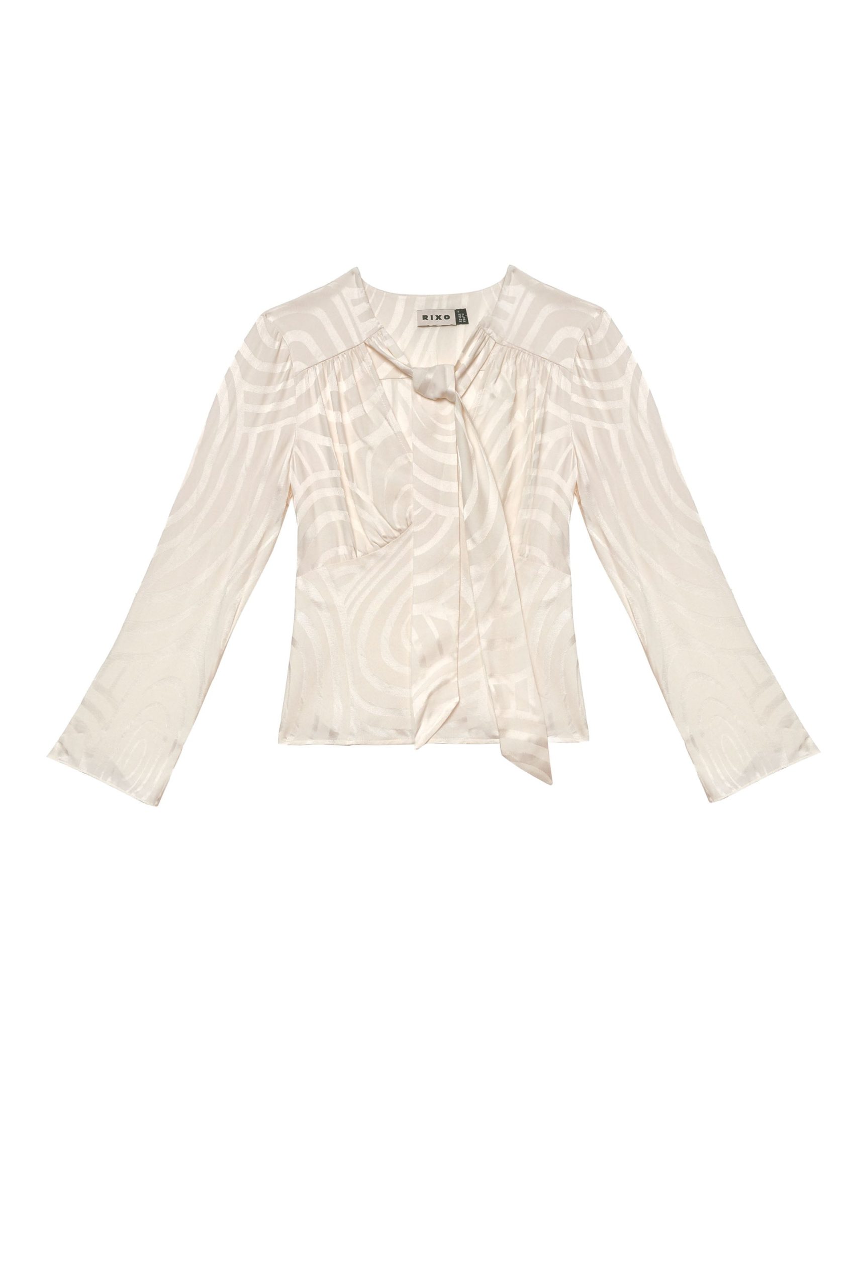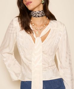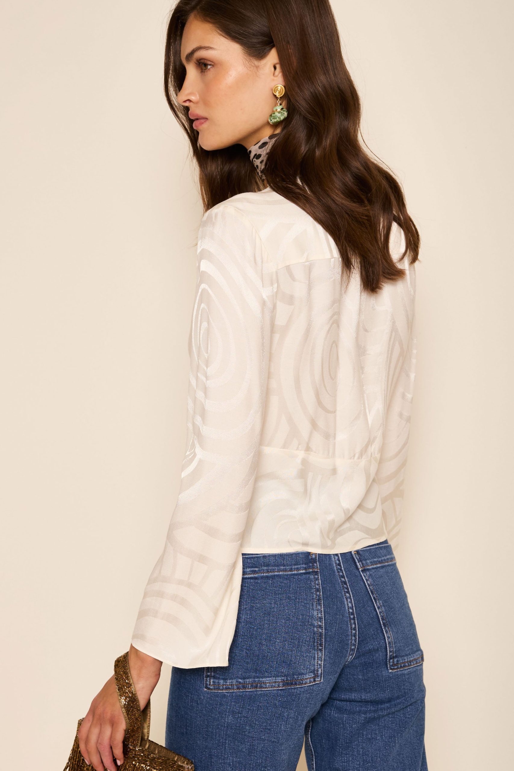 Product detailsDetailsAbel is a more fitted version of our Moss blouse, in a slightly shorter length that’s designed to be untucked. It’s made from satin jacquard with ties at the neck that we like long and loose. Wear it with your favourite jeans and skirts.Fit