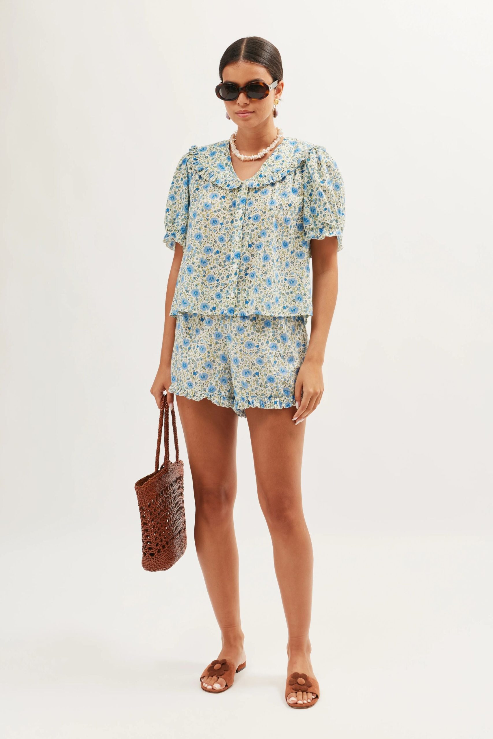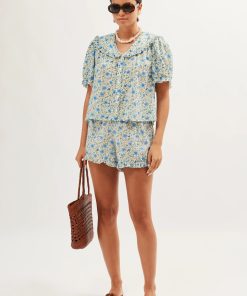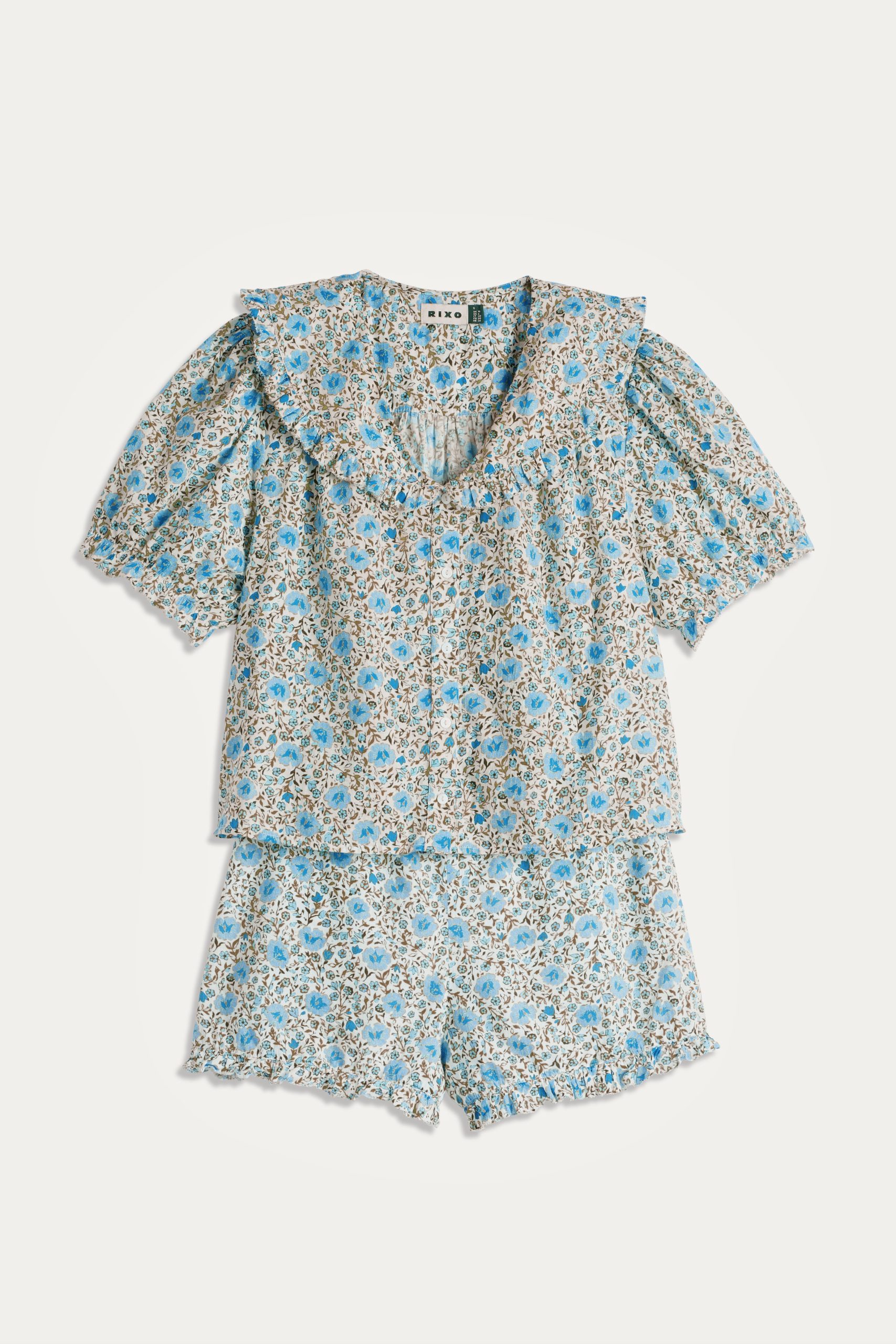 Product detailsDetailsDesigned with frilly trims and a curved collar, this Alva co-ord is pretty enough to wear out. It’s made from soft cotton-voile and the shorts are elasticated at the waist for comfort.Fit