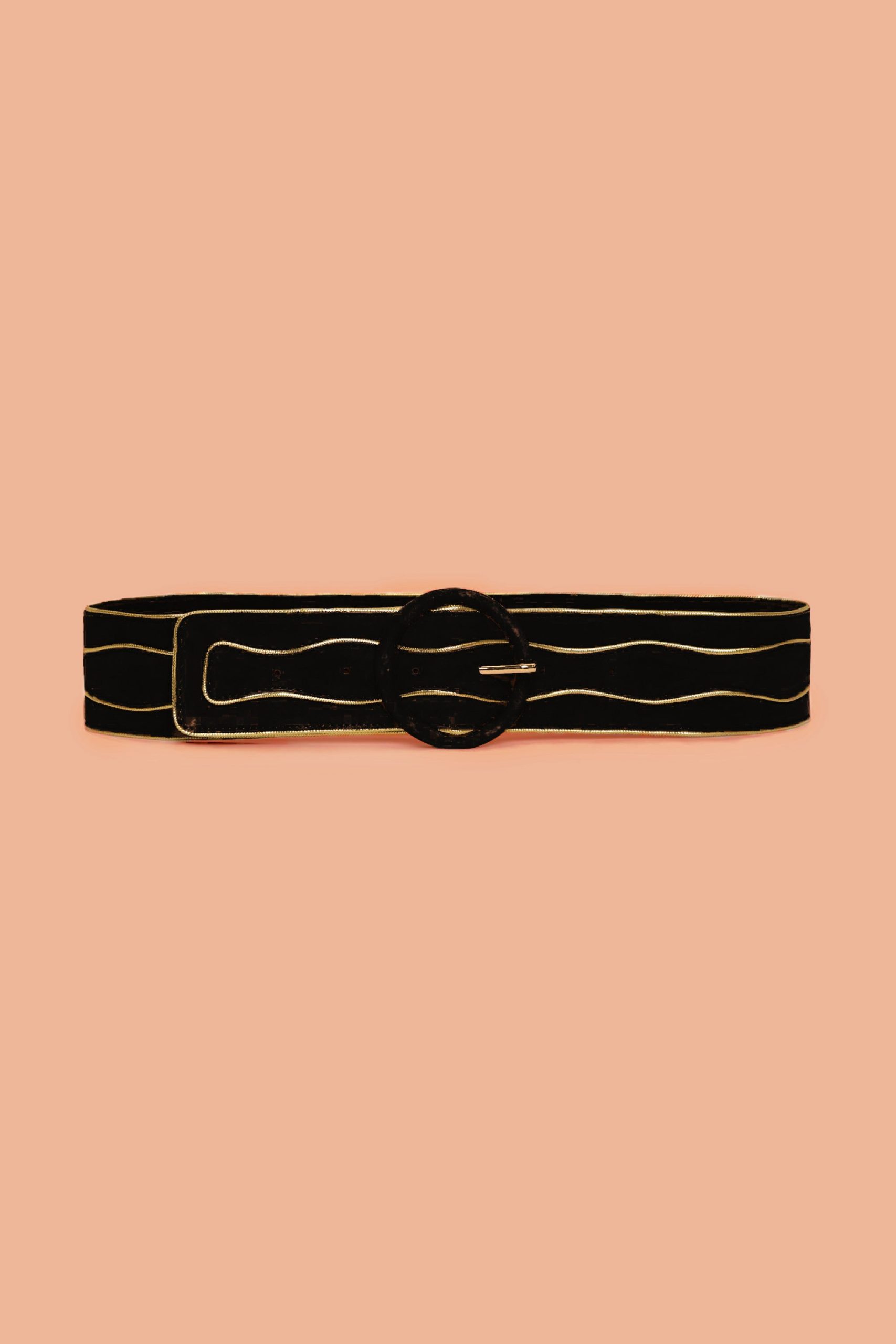 Product detailsDetailsInspired by vintage belts, Catalina is made from smooth suede and detailed with wavy gold panels. It’s designed to be worn at the waist and is such an easy way to elevate your favourite dresses and skirts.Fit