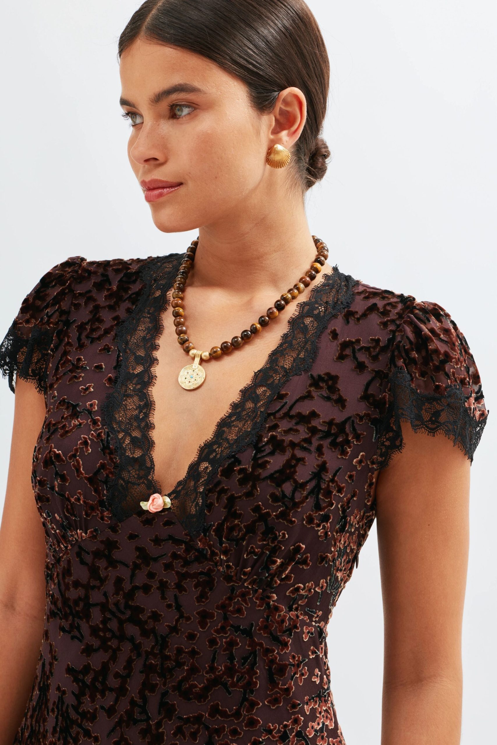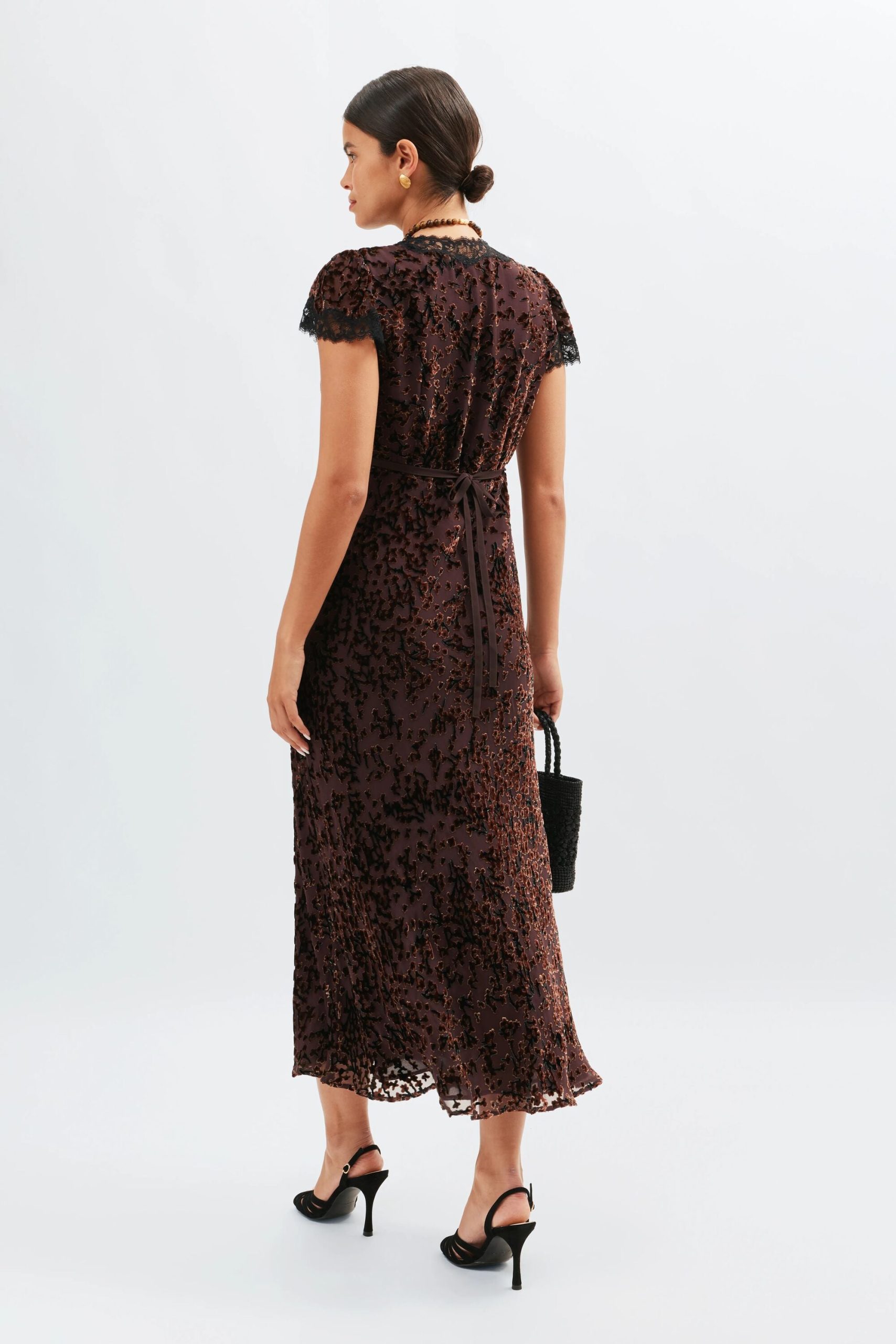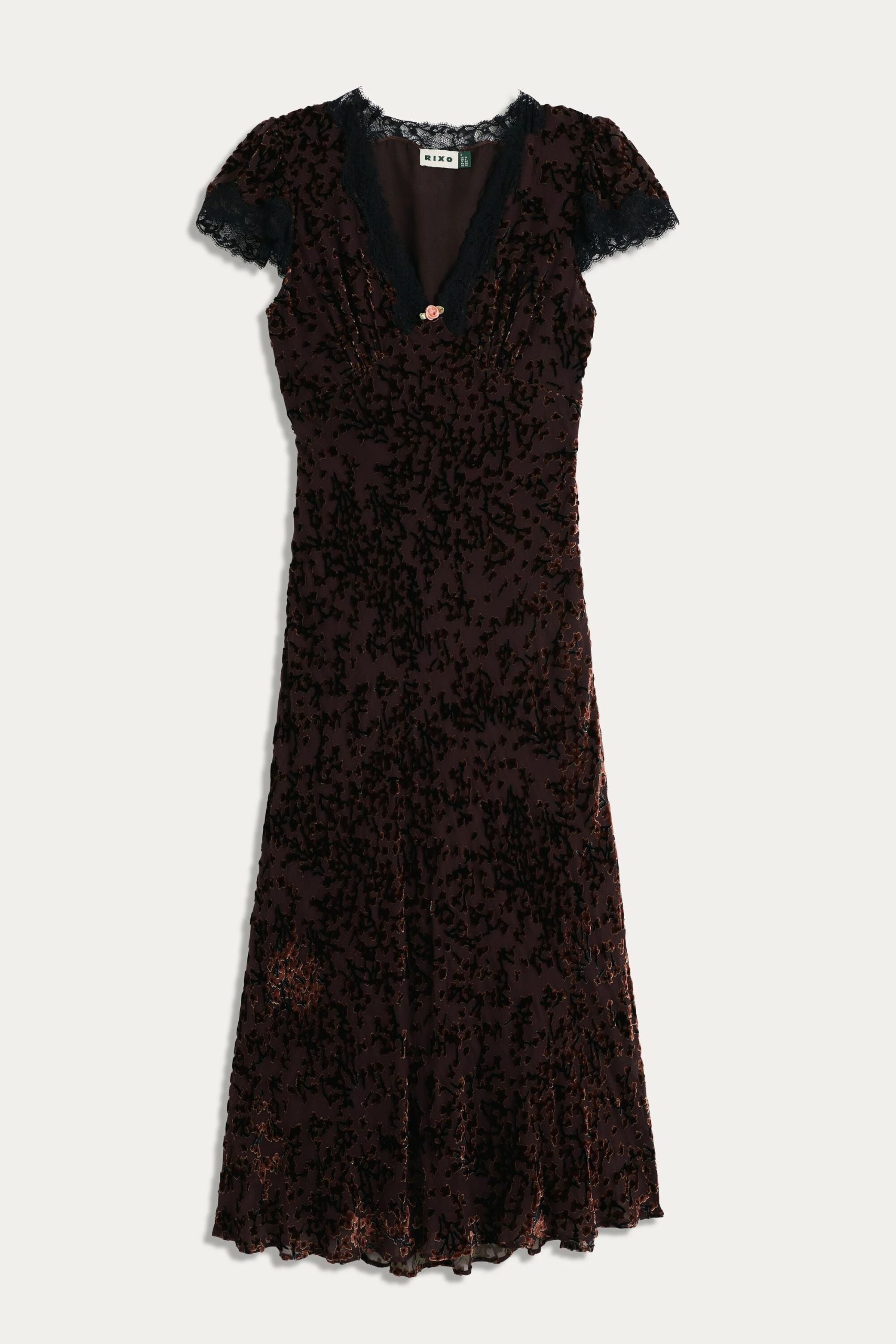 Product detailsDetailsThe iconic Clarice, now in a beautiful brown and burn out velvet style. Inspired by a vintage nightdress, it’s the perfect dress that blends elegance and ease, made for you to reach for time and time again. Simply pair with a dinner jacket and your go-to earrings.Prices will vary across our beloved Clarice styles due to different fabric compositions. Our luxurious crinkled-georgette, crinkled-chiffon and velvet pieces will be available at a higher price point. Find our other Clarice dresses here.Fit