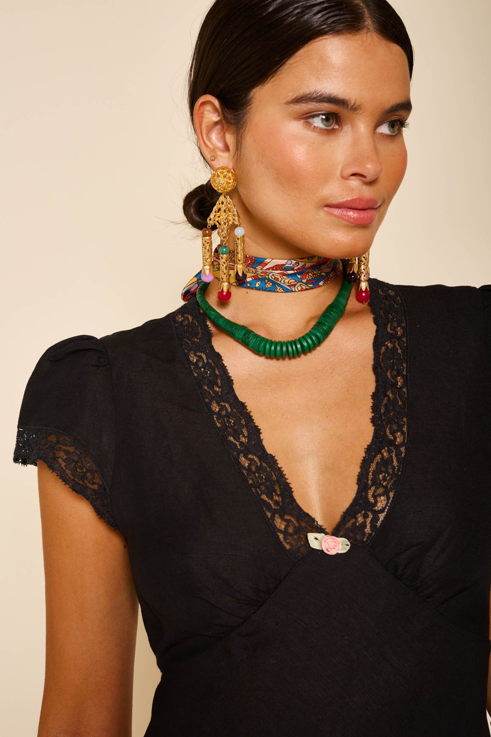Product detailsDetailsThese statement Divina earrings are inspired by a vintage pair of Orlagh’s that she loves using on RIXO shoots. Deceptively lightweight thanks to the hollowed 18-karat gold-plated design, they have translucent resin beads for a welcome hit of colour.Fit