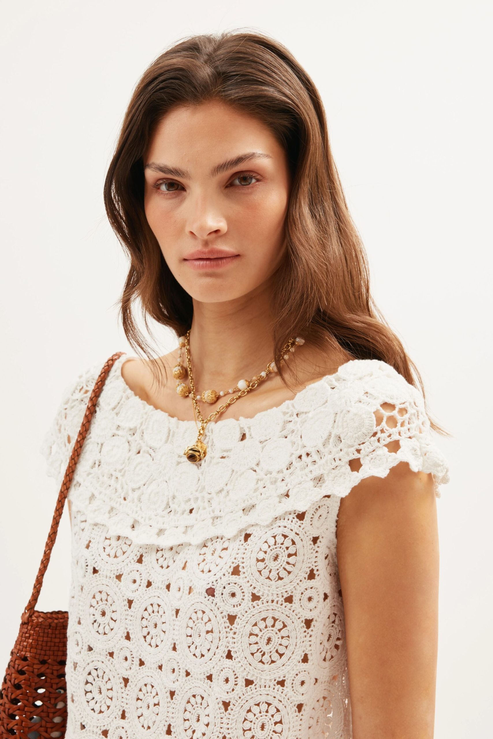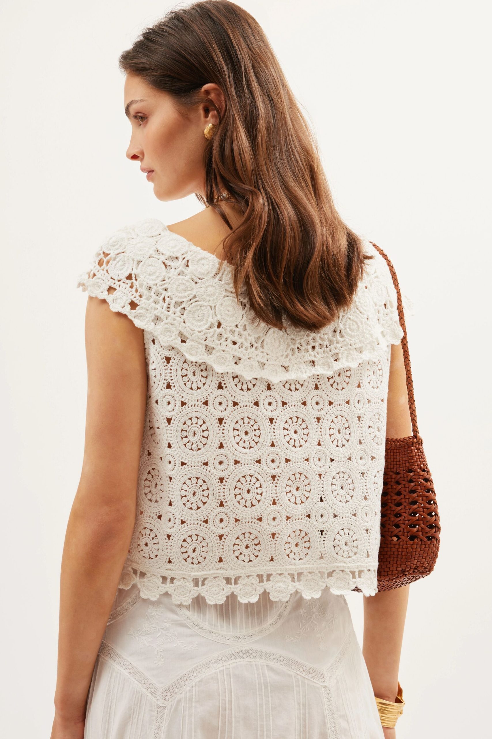 Product detailsDetailsThis Eimear top is perfect for pairing with our printed skirts. It’s crocheted for a vintage feel and traced with hand-crocheted trims. Prefer a dress? You’ll love Envalira.Fit