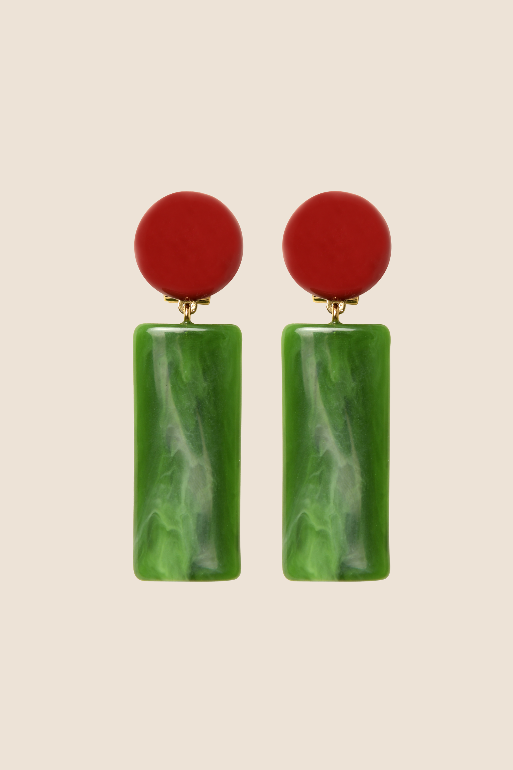 Product detailsDetailsThese geometric Elka earrings have a retro feel, inspired by a pair our co-founder found in an Italian flea market. Designed with 18-karat gold-plated clip fastenings, they’re made from smooth resin in colours inspired by the Sundance collection.Fit
