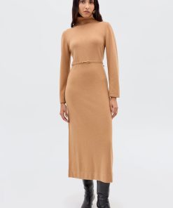 Product detailsDetailsThe ultimate knitted dress, Elliette exudes modern sophistication with a sixties spirit. The turtleneck is cosy yet elegant and the subtle volume in the sleeves adds a playful detail to this minimalist style. It comes with a built-in belt, fastened with a muted gold clasp to cinch in the waist. With a pair of Kierna pumps, it’s the perfect office-to-afterwork cocktails-staple.Fit