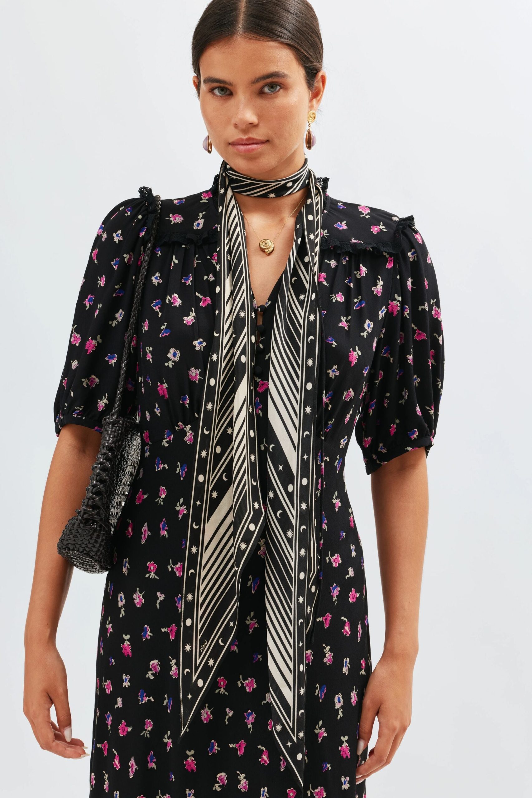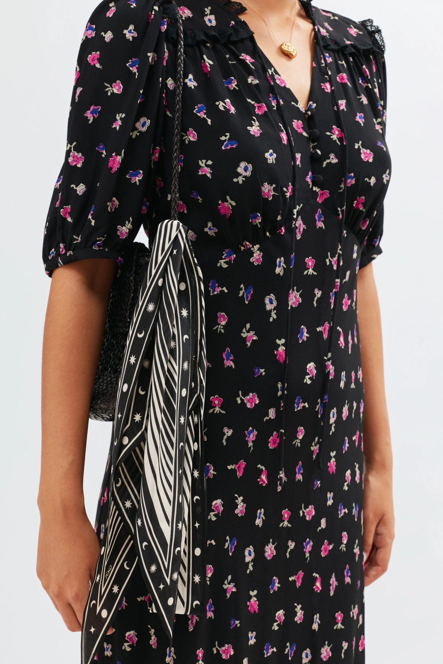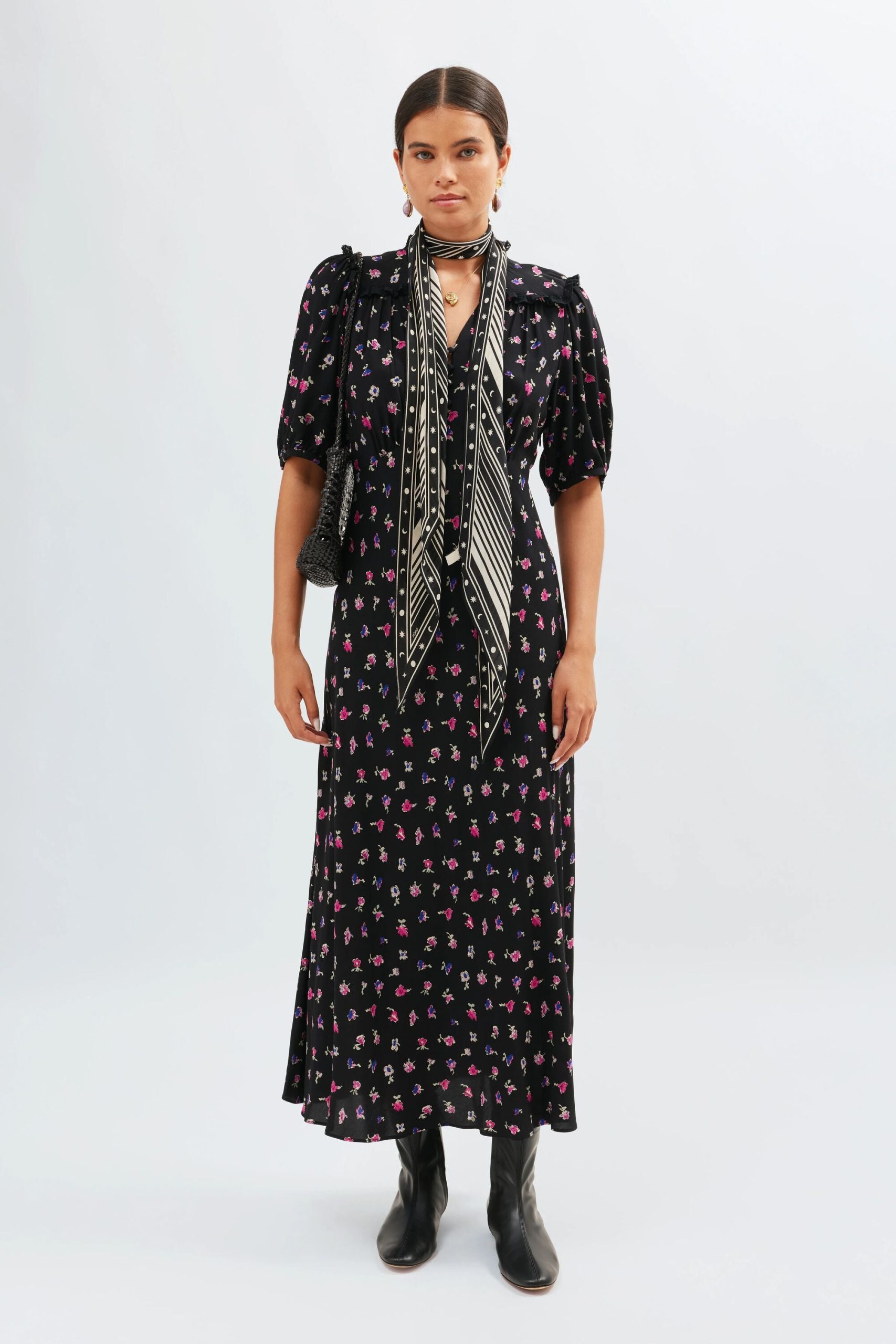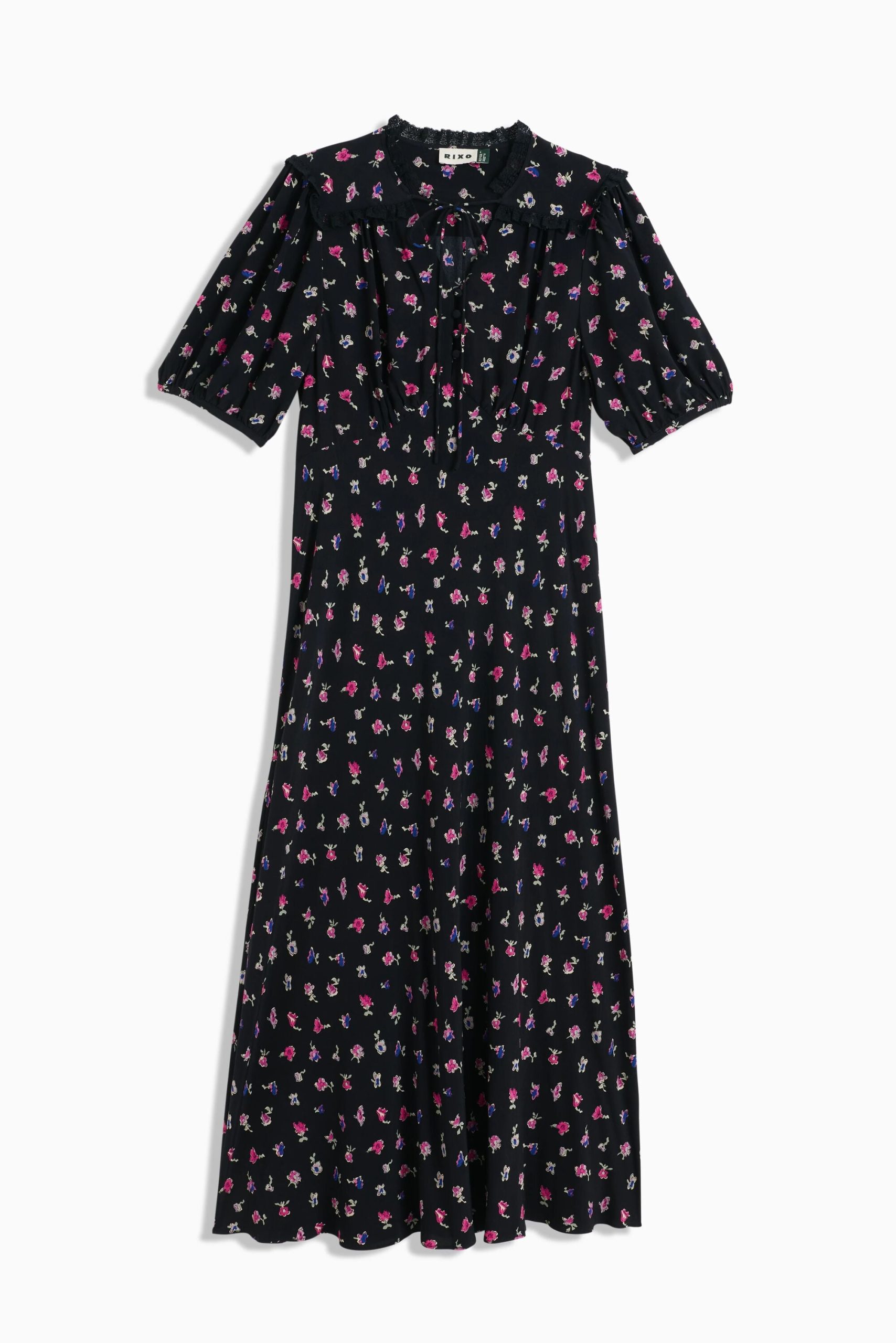 Product detailsDetailsOur new Gwen dress oozes everyday elegance. Featuring disty floral prints, inspired by vintage patterns — this is the ultimate day to night classic. Style yours with our beautiful gold-plated Taelia shell necklace.Fit