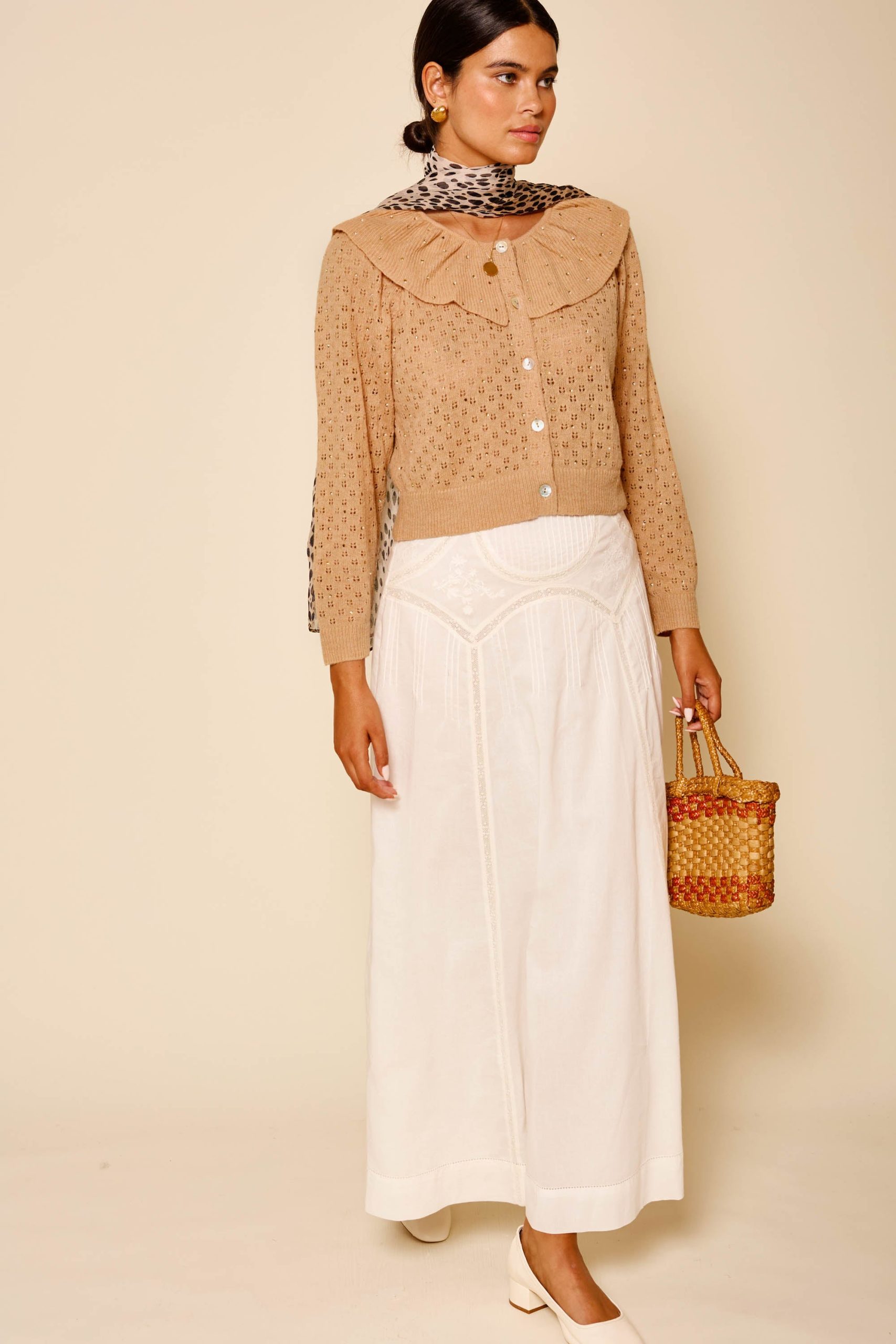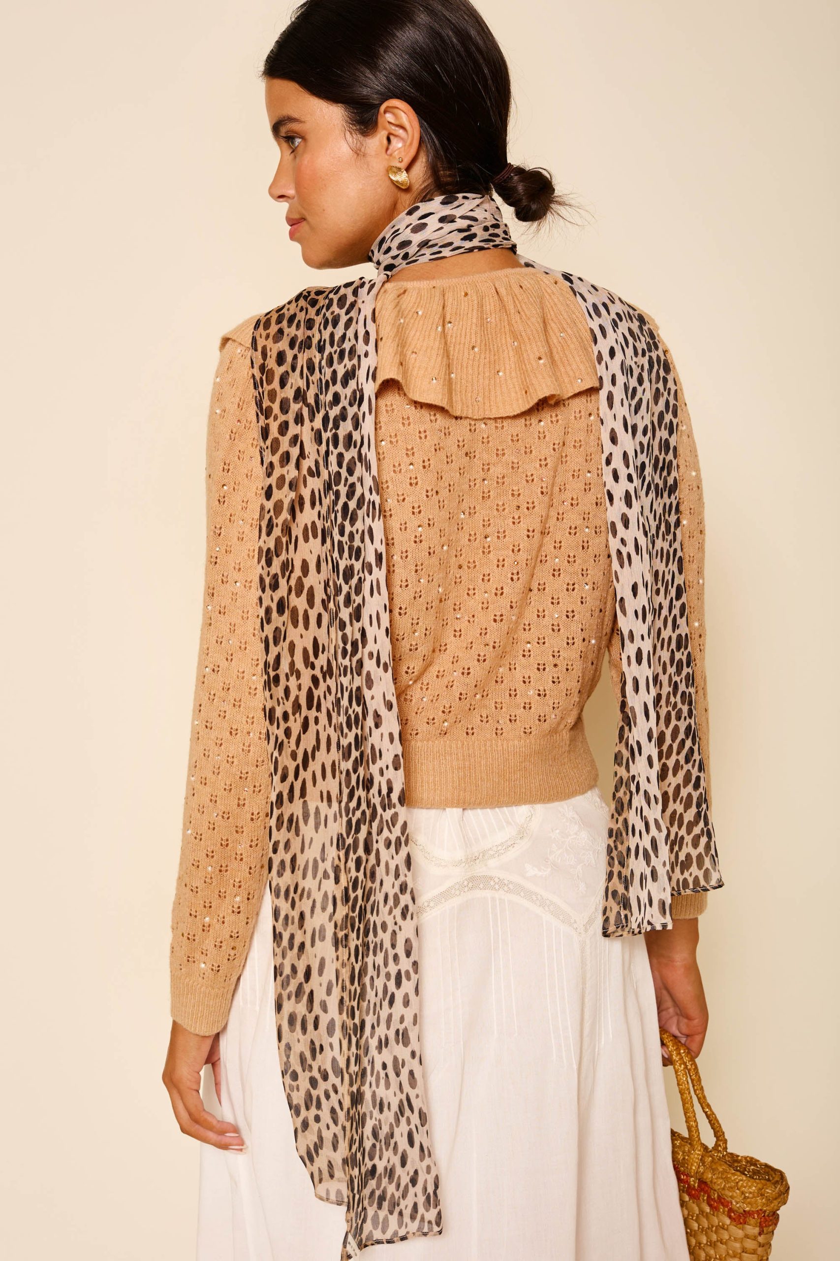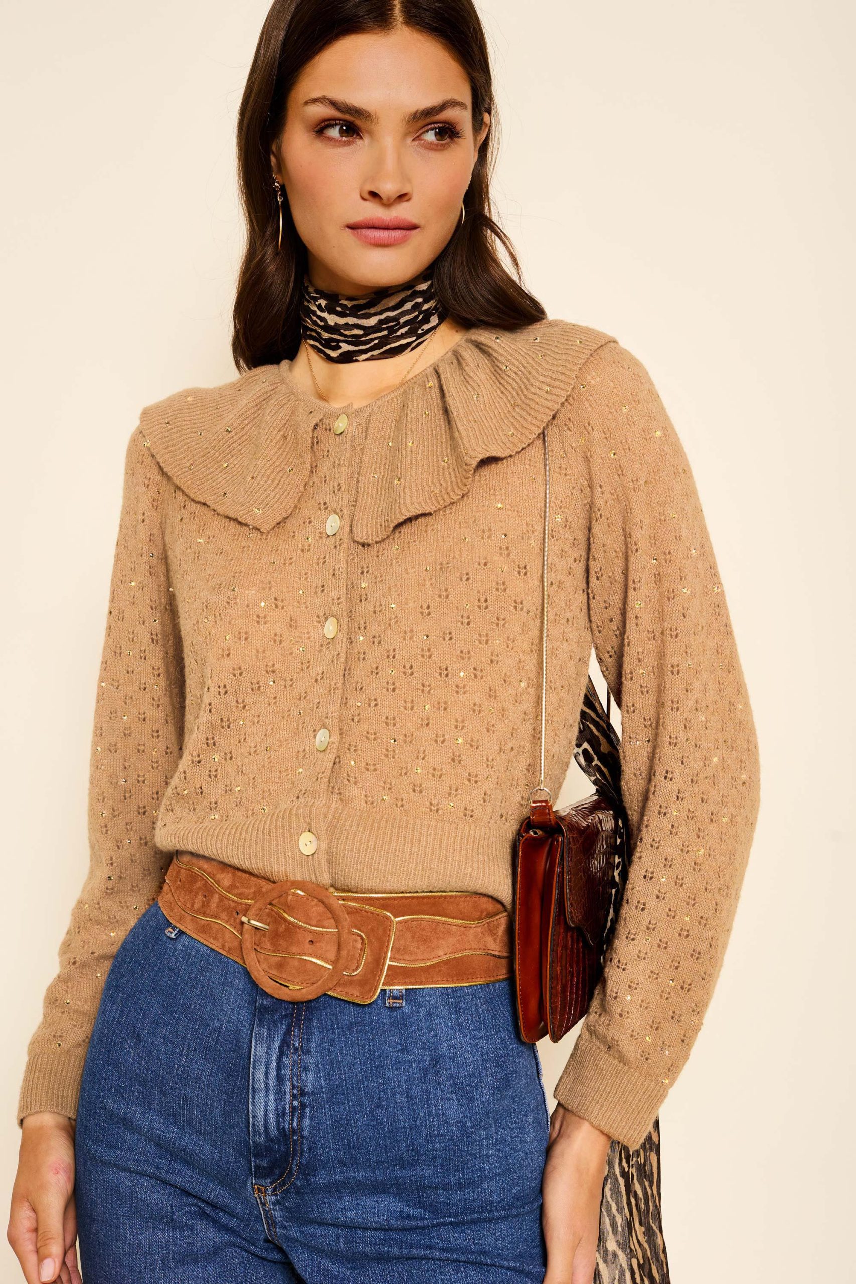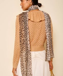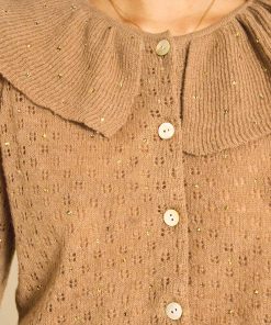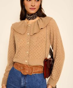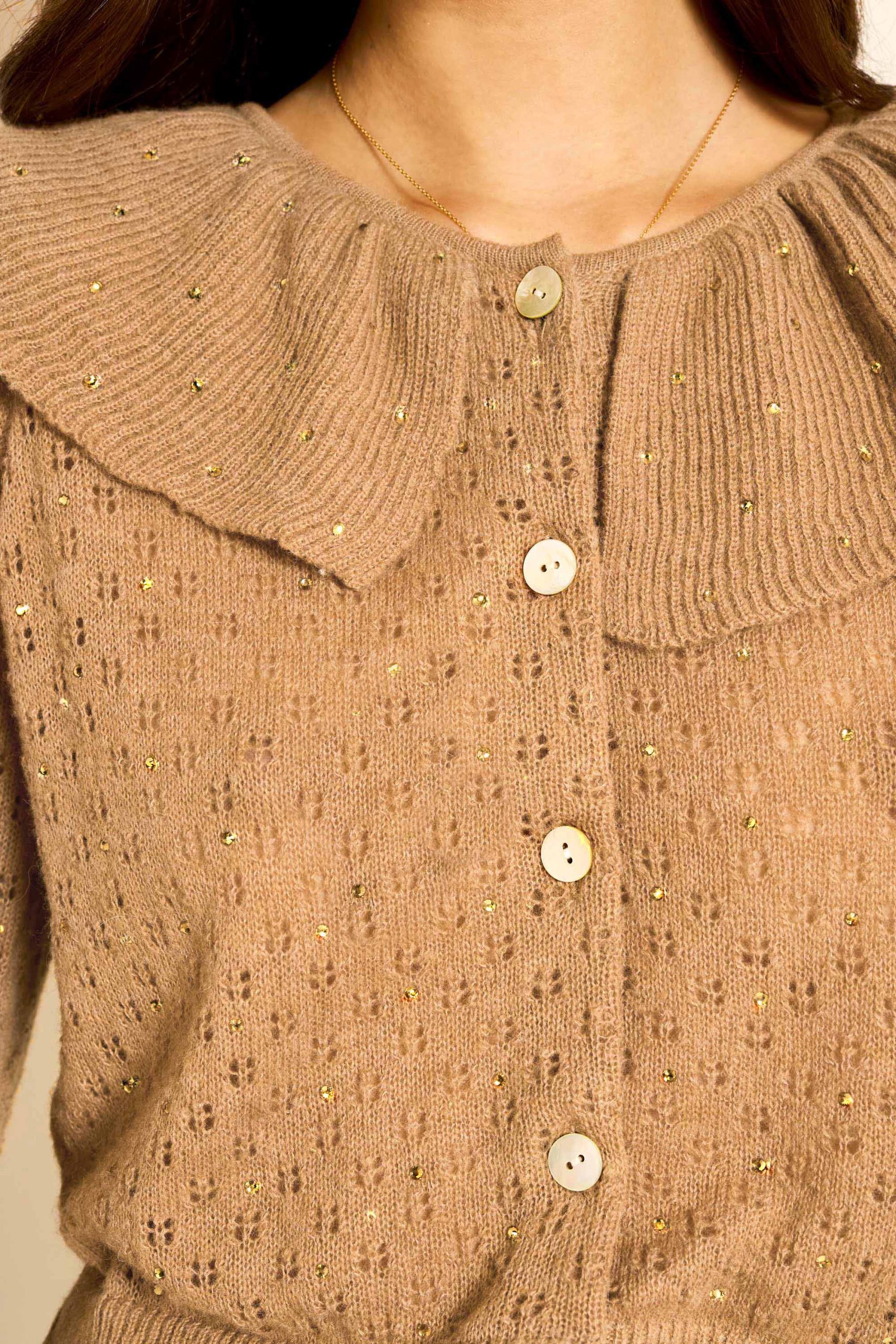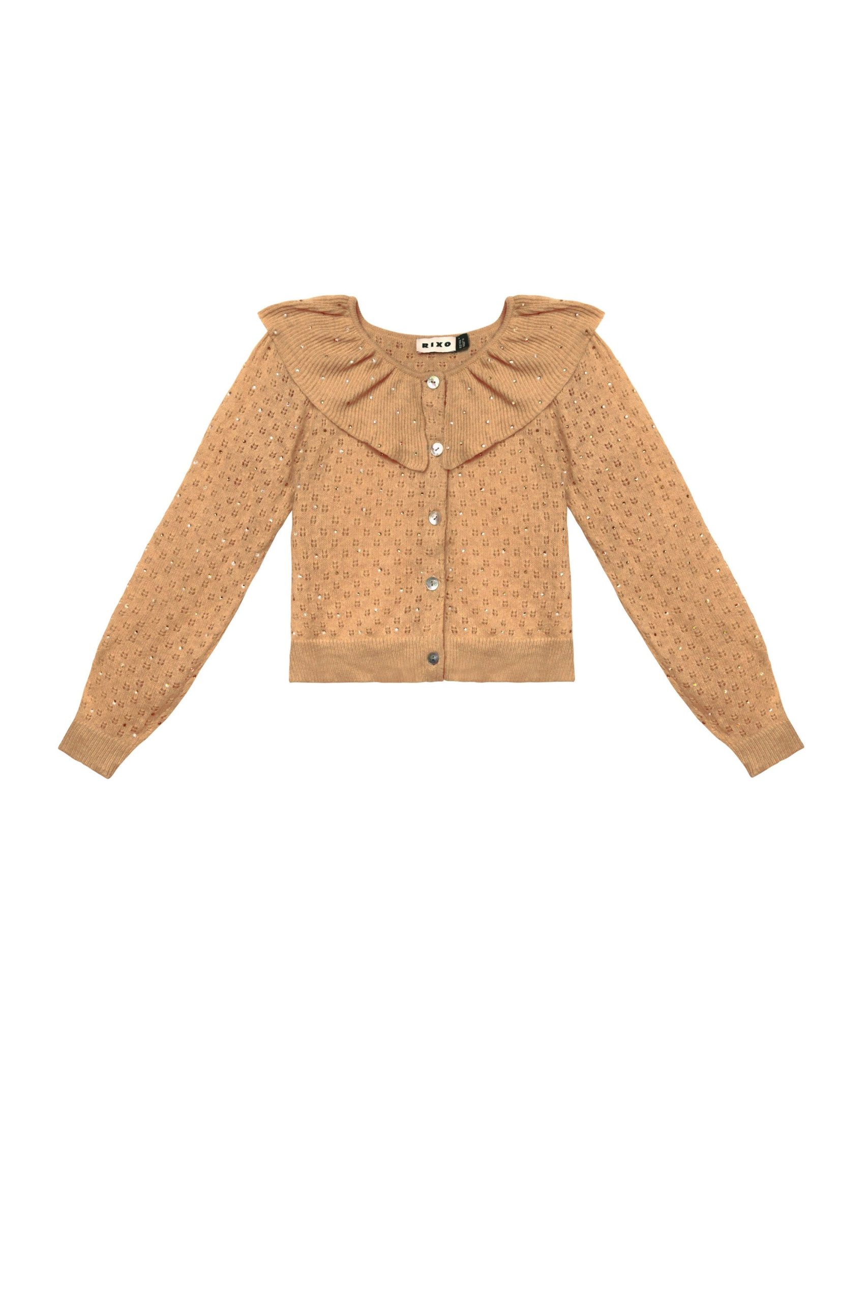 Rixo Women’s Jelena Embellished Knitted Cardigan | Crystal Embellishment Camel