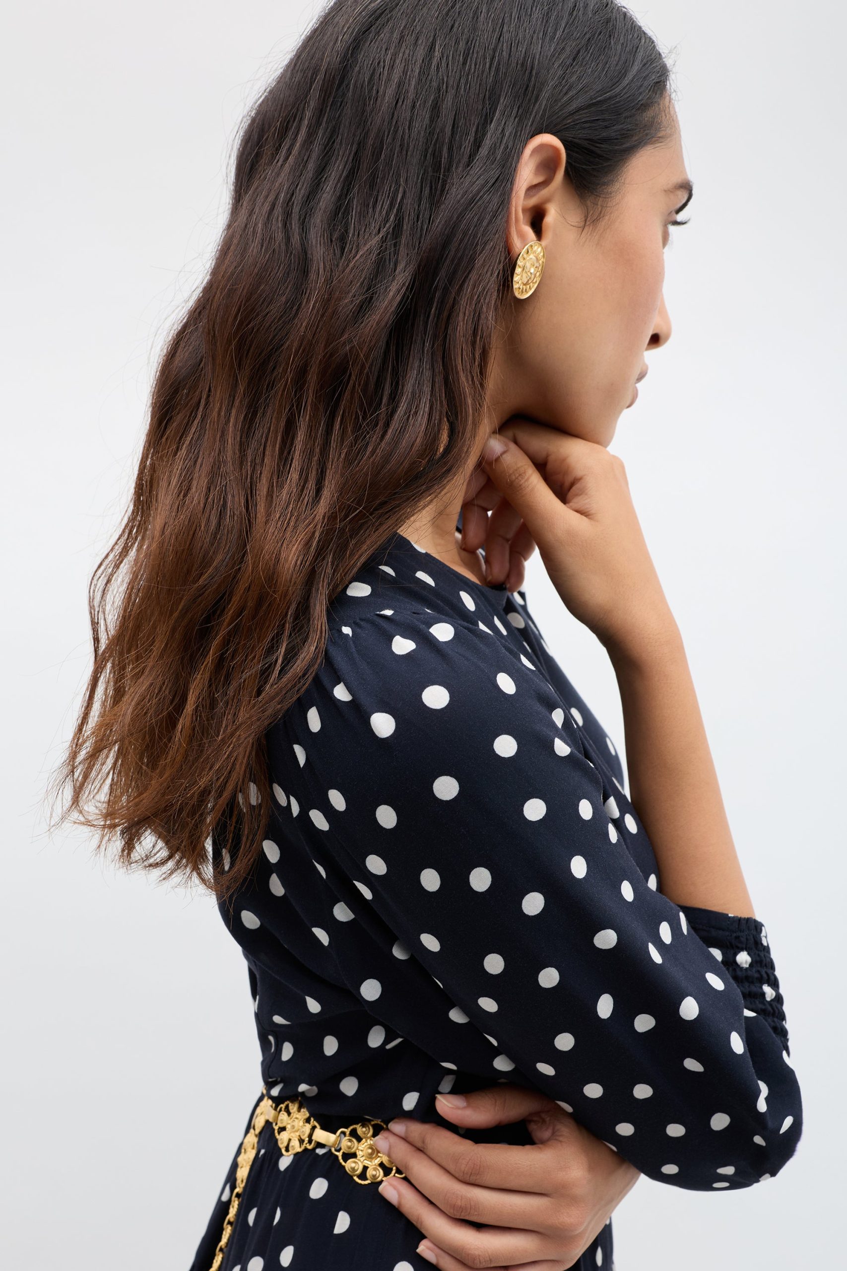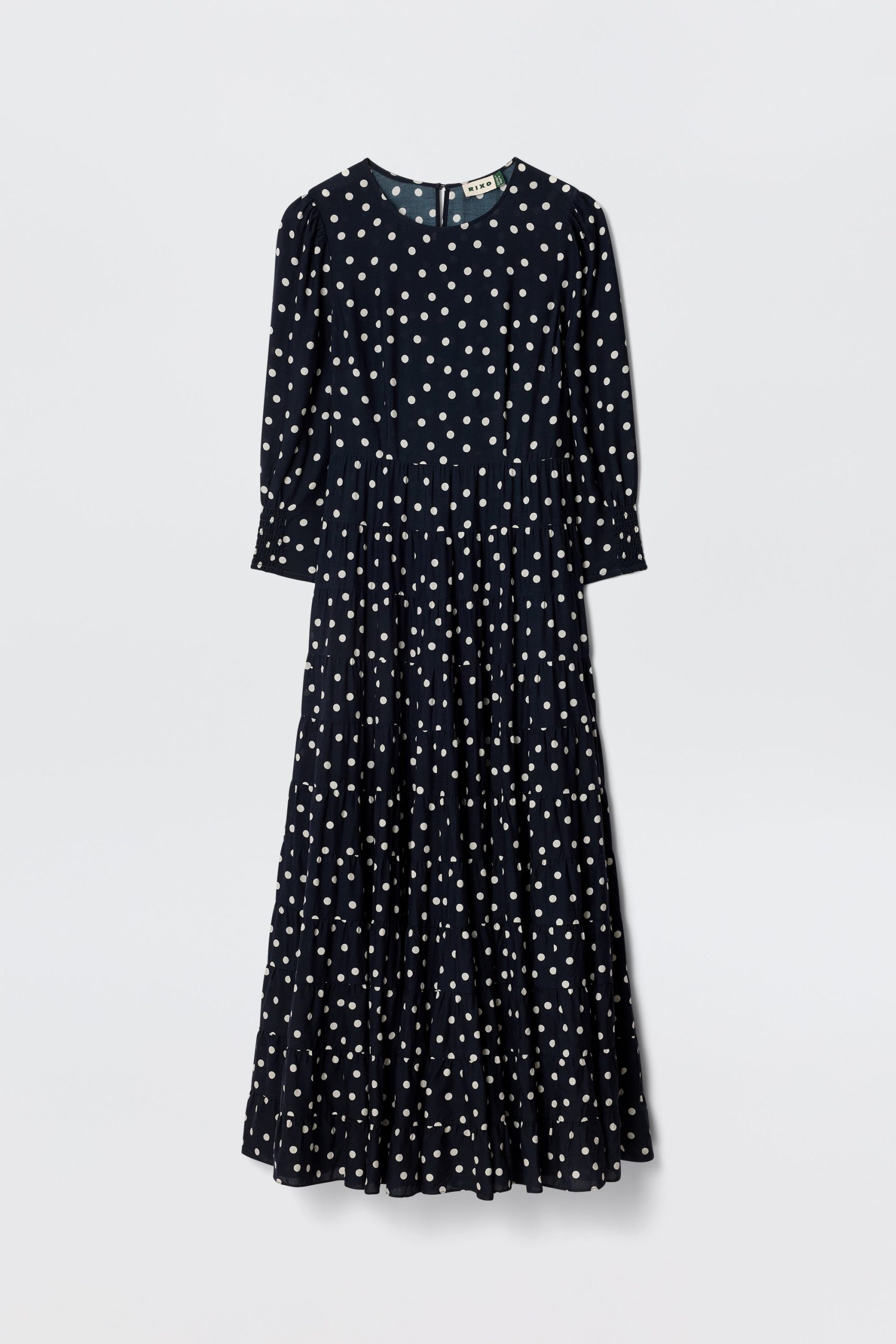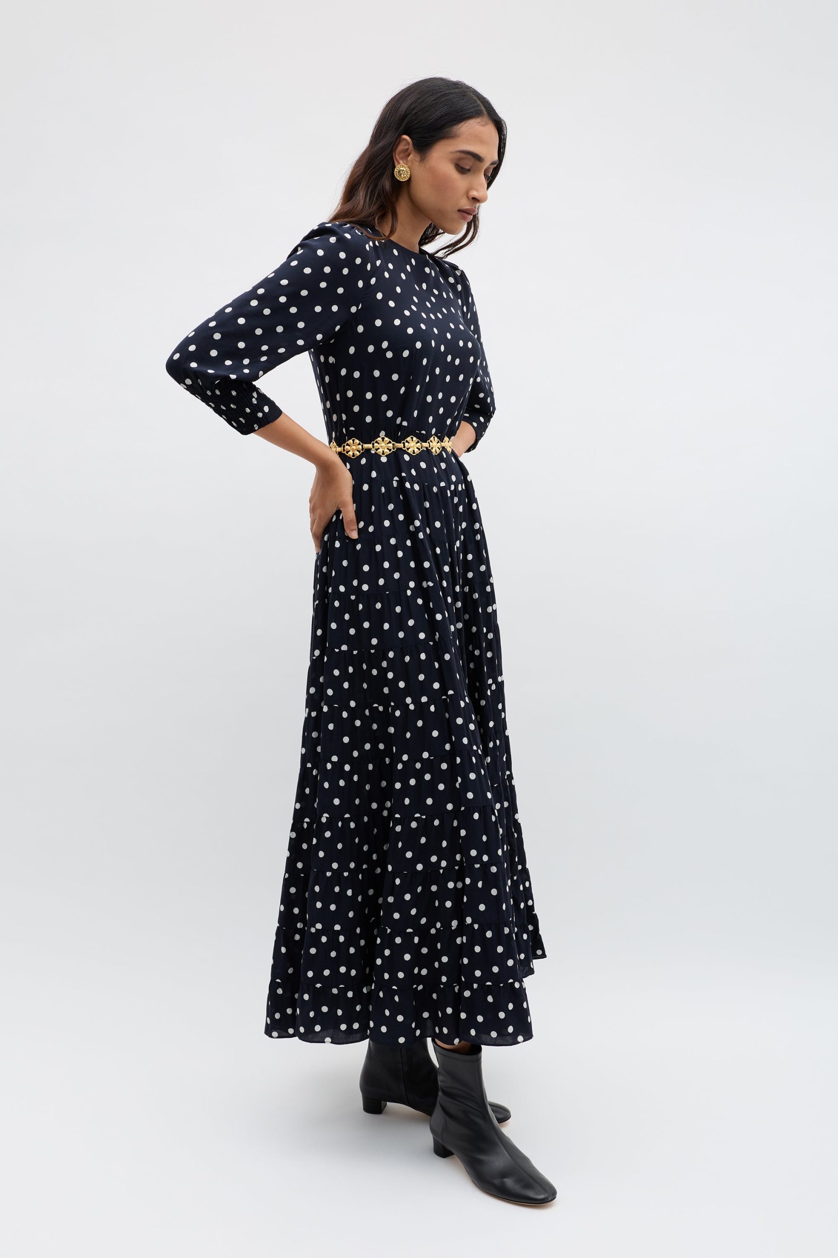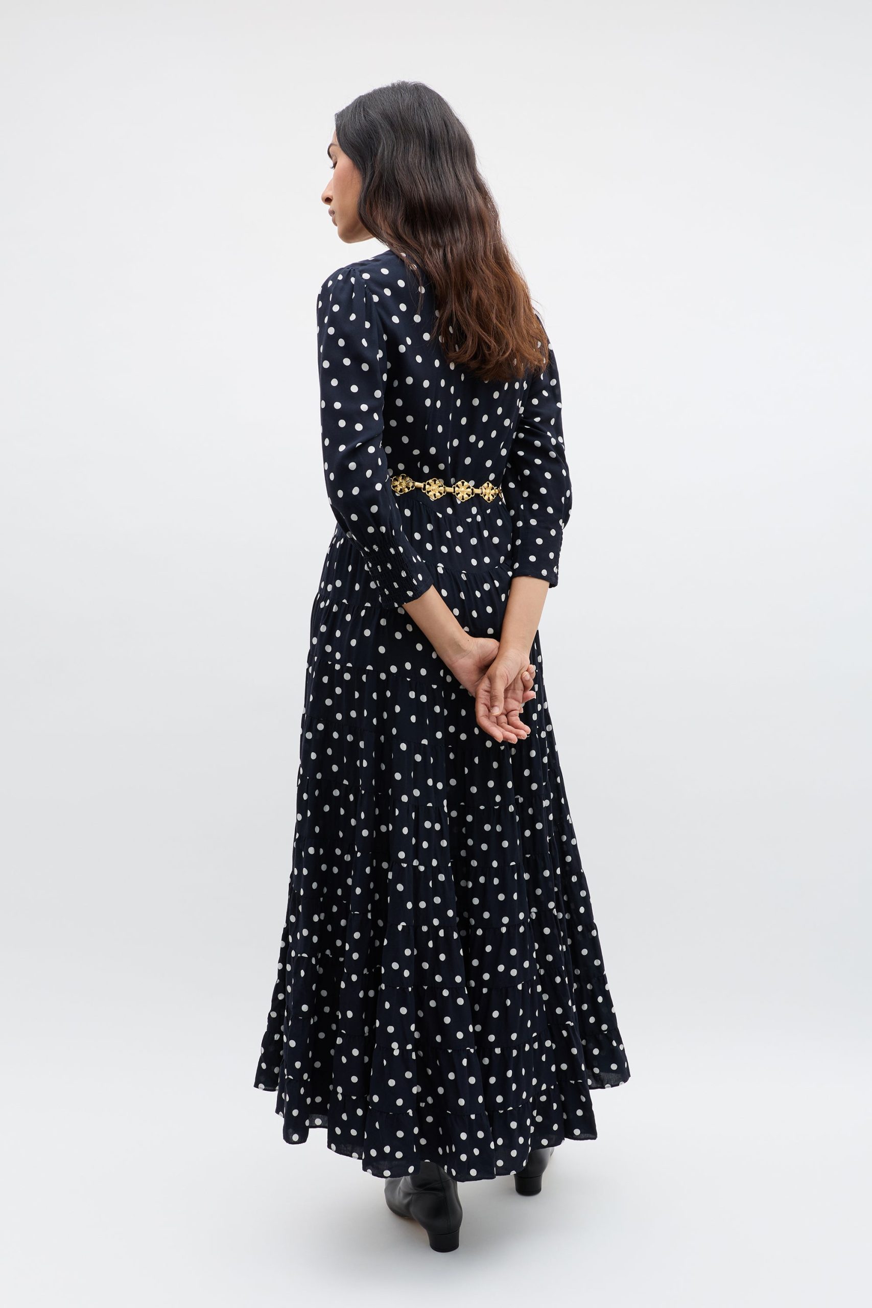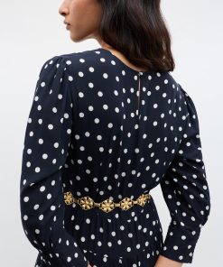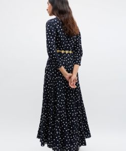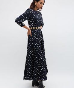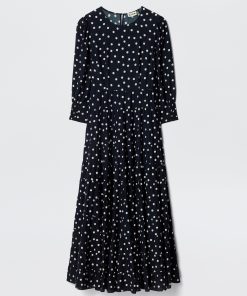 Product detailsDetailsOur Kristen Dress – classic, refined and effortlessly elegant. The cuffed sleeves give the sleeves a subtle billow for a romantic feel. Vintage-inspired, the bohemia dot print is timeless and versatile. The staple dress for busy days running errands in the city to nights celebrating life’s special moments.Fit