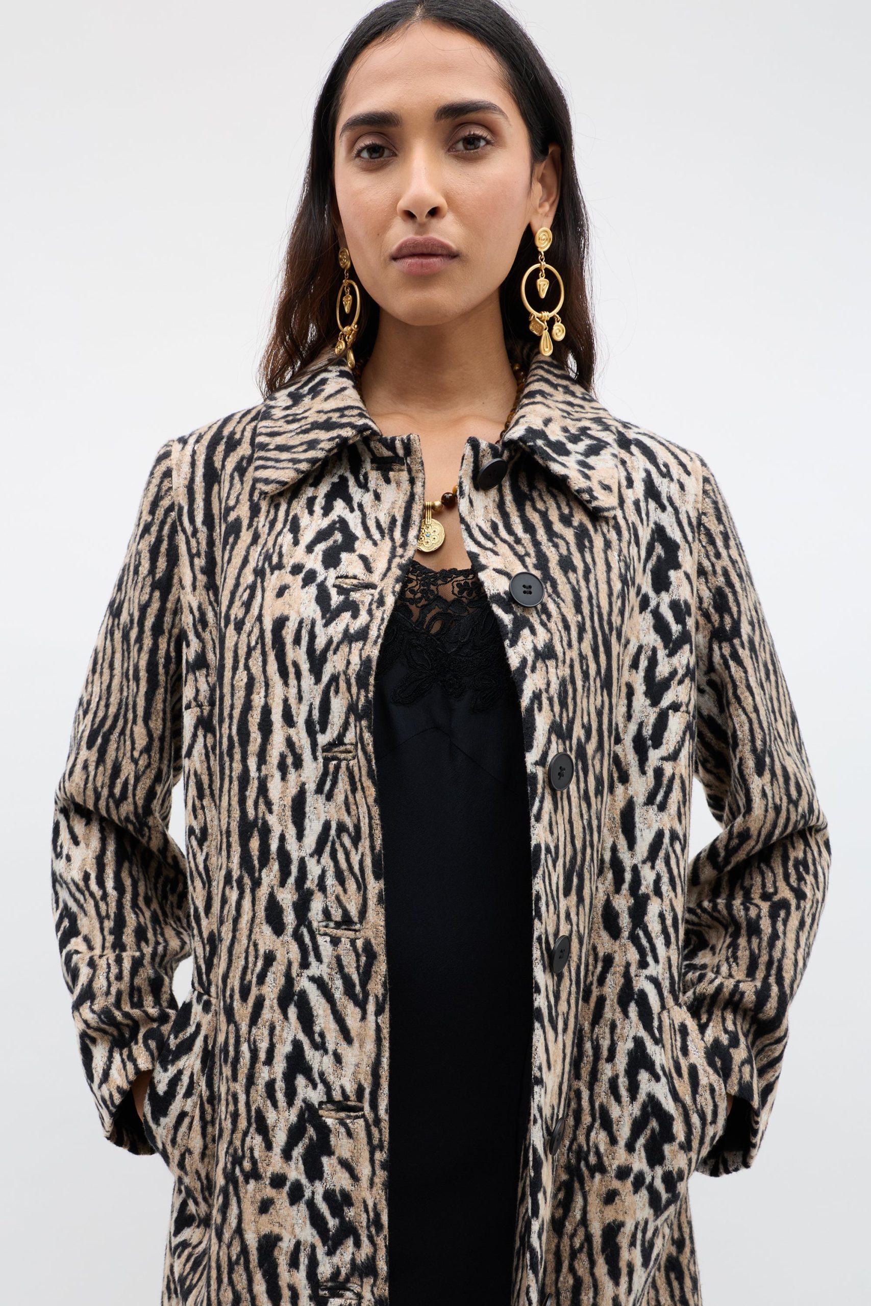 Product detailsDetailsInspired by 70s styles, our Milly coat is a RIXO signature. It’s made from soft brushed felt and detailed with our hand-painted Bohemia Leopard print, just like ourTommie jacket. The shape is long and enveloping – perfect for cold days.Fit