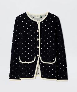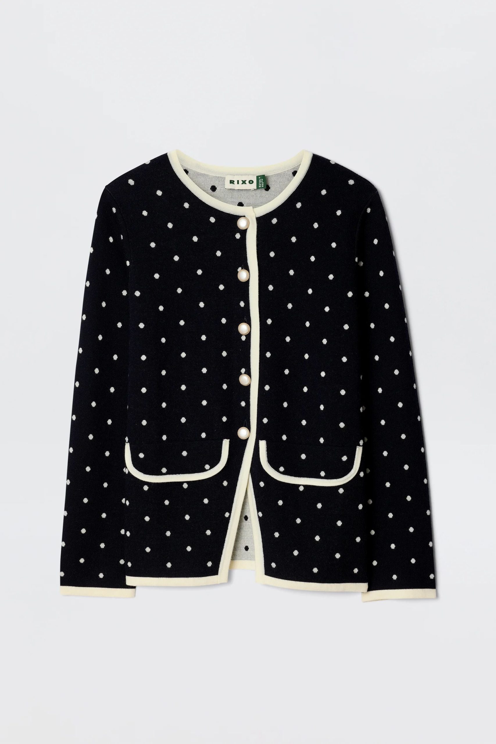 Product detailsDetailsA true heirloom piece, our Mirja Cardigan is a new style for us and inspired by classic 1960s styles, with white hemmed lapels, beautiful vintage-inspired pearl buttons and crafted from luxuriously soft merino wool. It’s patterned in our City Spot printa timeless polka dot print that’s forever-in-style.Fit