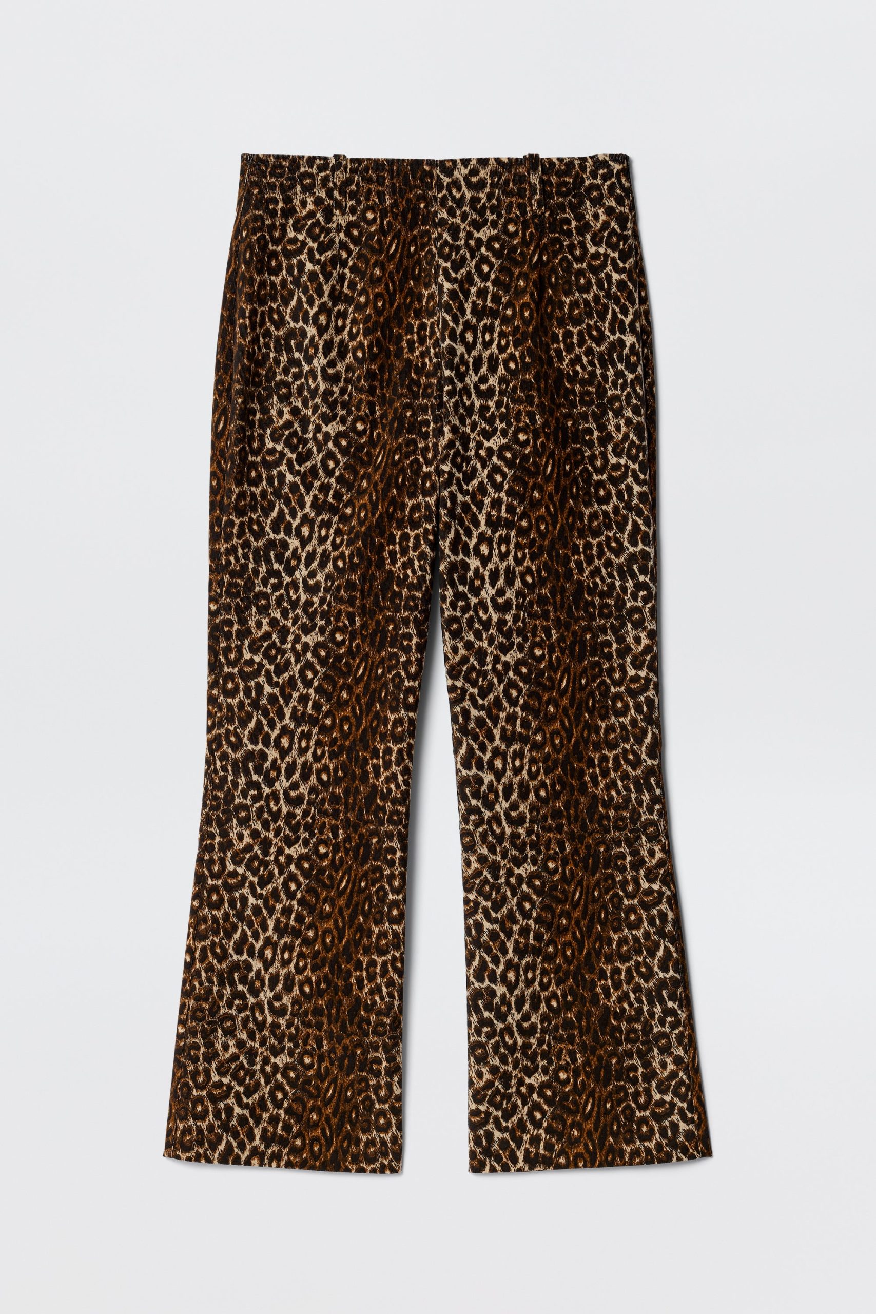 Product detailsDetailsMeet our timeless Olwen. A new fit and flare trouser style, with an understated finish with a belt loop and no waistband. Rendered in a classic leopard print- a RIXO favourite. it’s the perfect vintage-inspired tailored separate. Wear yours with its matching cotton-wool blend Xander jacket for a confident 70s-feel suiting look, RIXO style.Fit