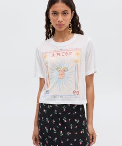 Product detailsDetailsOur Co-founder, Orlagh, sketched this Aries illustration by hand so each Ria T-shirt is unique. It’s made from slightly sheer jersey with a cropped hem that’s easy to tuck into your favourite RIXO skirts.Fit