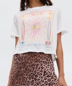 Product detailsDetailsOur Co-founder, Orlagh, sketched this Leo illustration by hand so each Ria T-shirt is unique. It’s made from slightly sheer jersey with a cropped hem that’s easy to tuck into your favourite RIXO skirts.Fit
