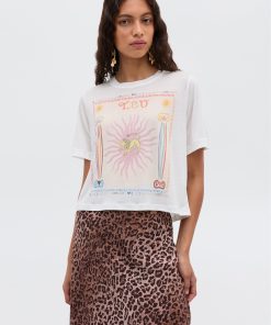 Product detailsDetailsOur Co-founder, Orlagh, sketched this Leo illustration by hand so each Ria T-shirt is unique. It’s made from slightly sheer jersey with a cropped hem that’s easy to tuck into your favourite RIXO skirts.Fit