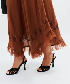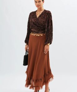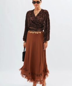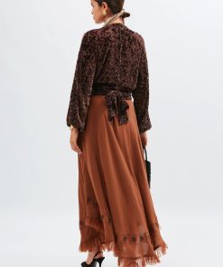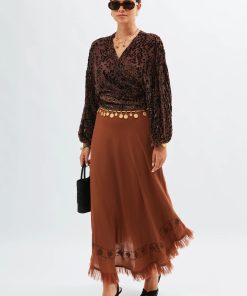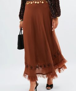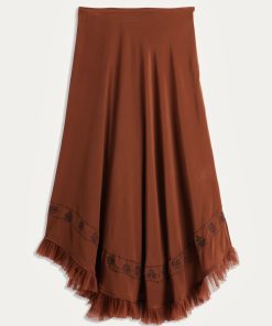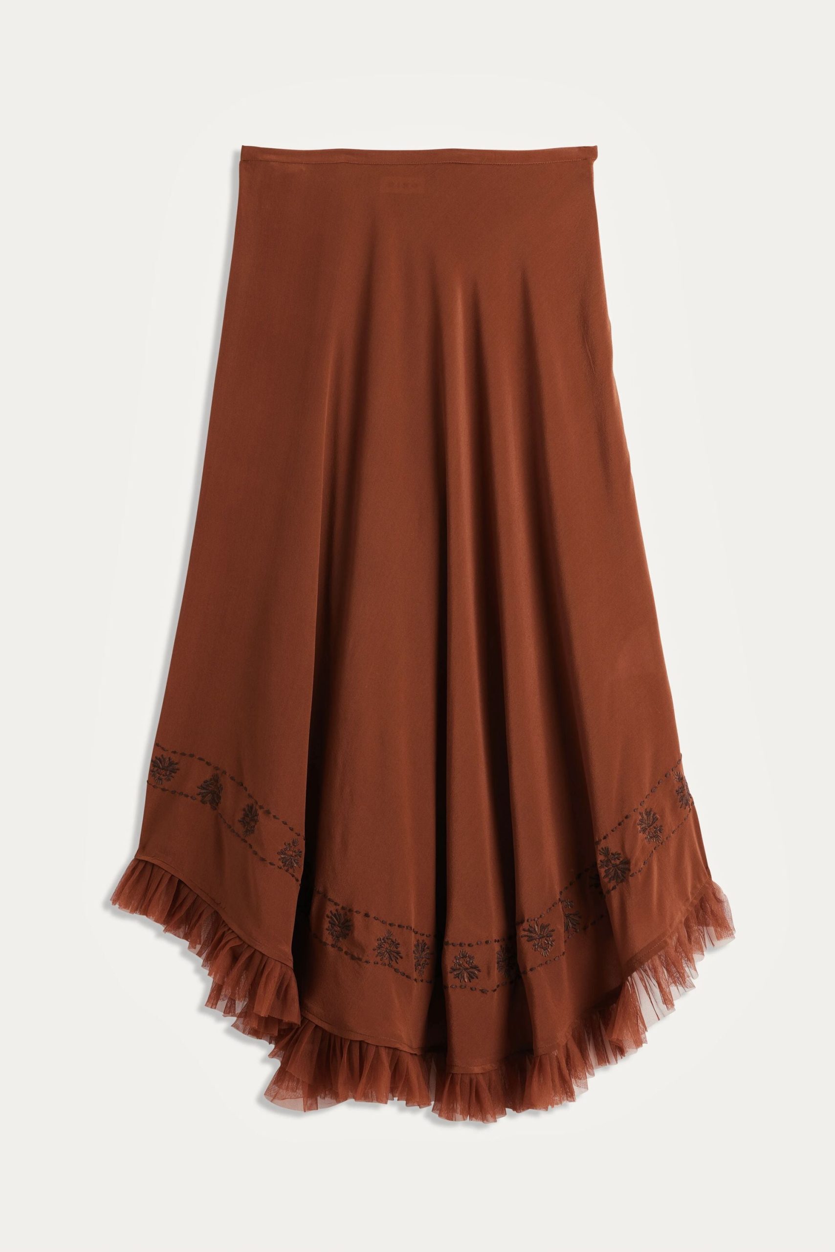 Product detailsDetailsRudy is based on a vintage skirt we loved. It has a circular cut with delicate mesh trims and subtle embroidery. The bronze silk goes with everything.Fit