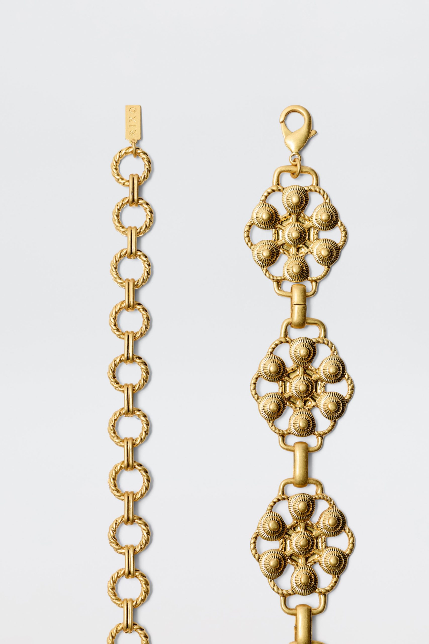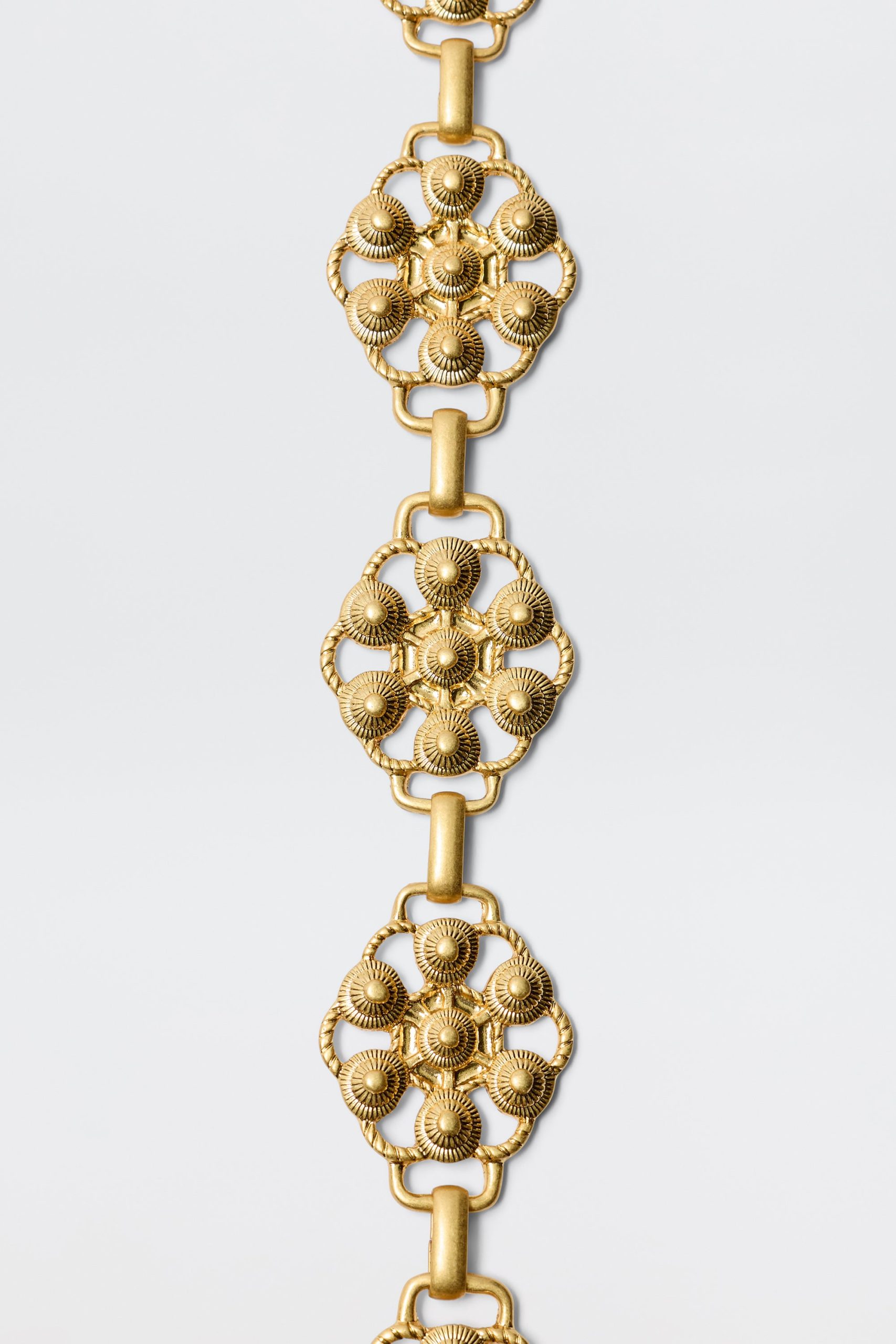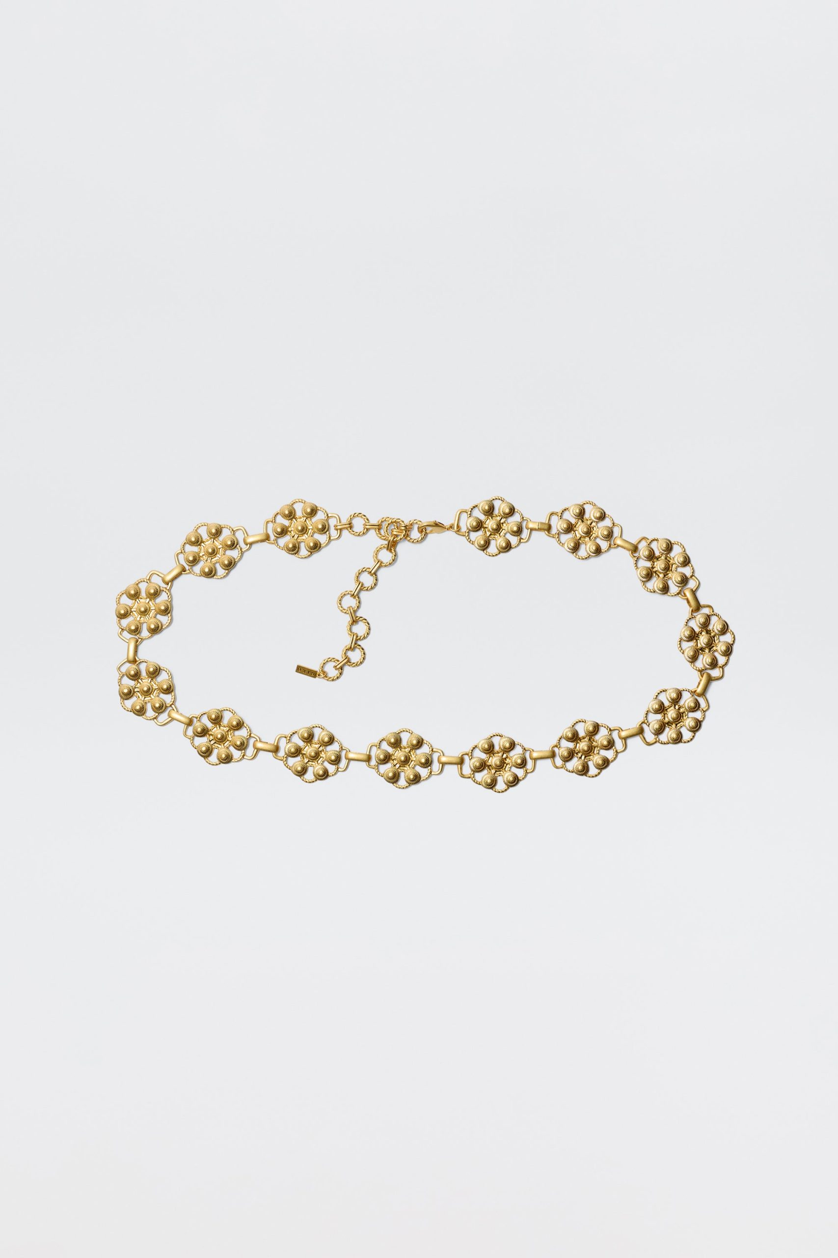 Product detailsDetailsDaisies are symbols of renewal and a favourite RIXO motif. They’re dotted along this chain Tiana belt, which is made from gold-plated metal and hinged so you can wear it loose or tighter around your waist.Fit