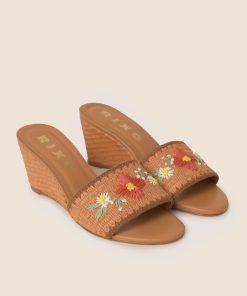 Product detailsDetailsThese Vardi wedges are woven from raffia for a summery feel and embroidered with dainty flowers. The wedge heel will be comfortable all day.Fit
