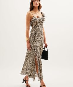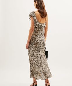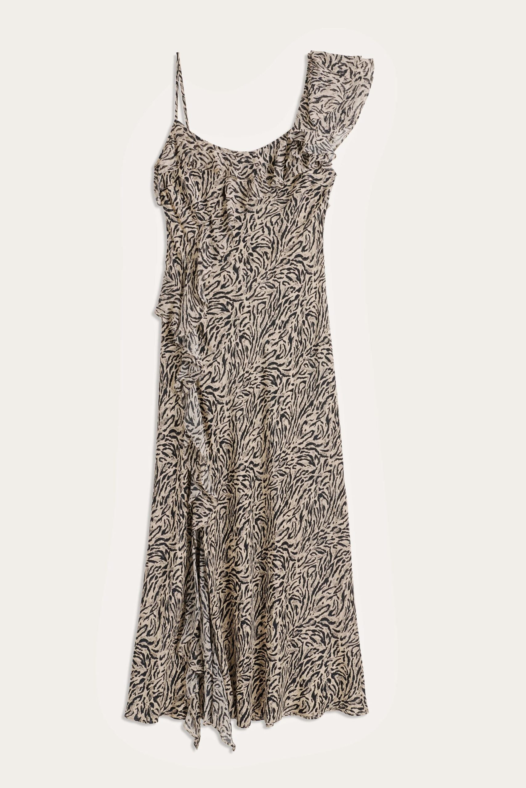 Product detailsDetailsThis Ester dress is inspired by slip styles from the ’90s. It’s made from lightweight silk with an asymmetric neckline and flouncy ruffles that trail down one side.Fit