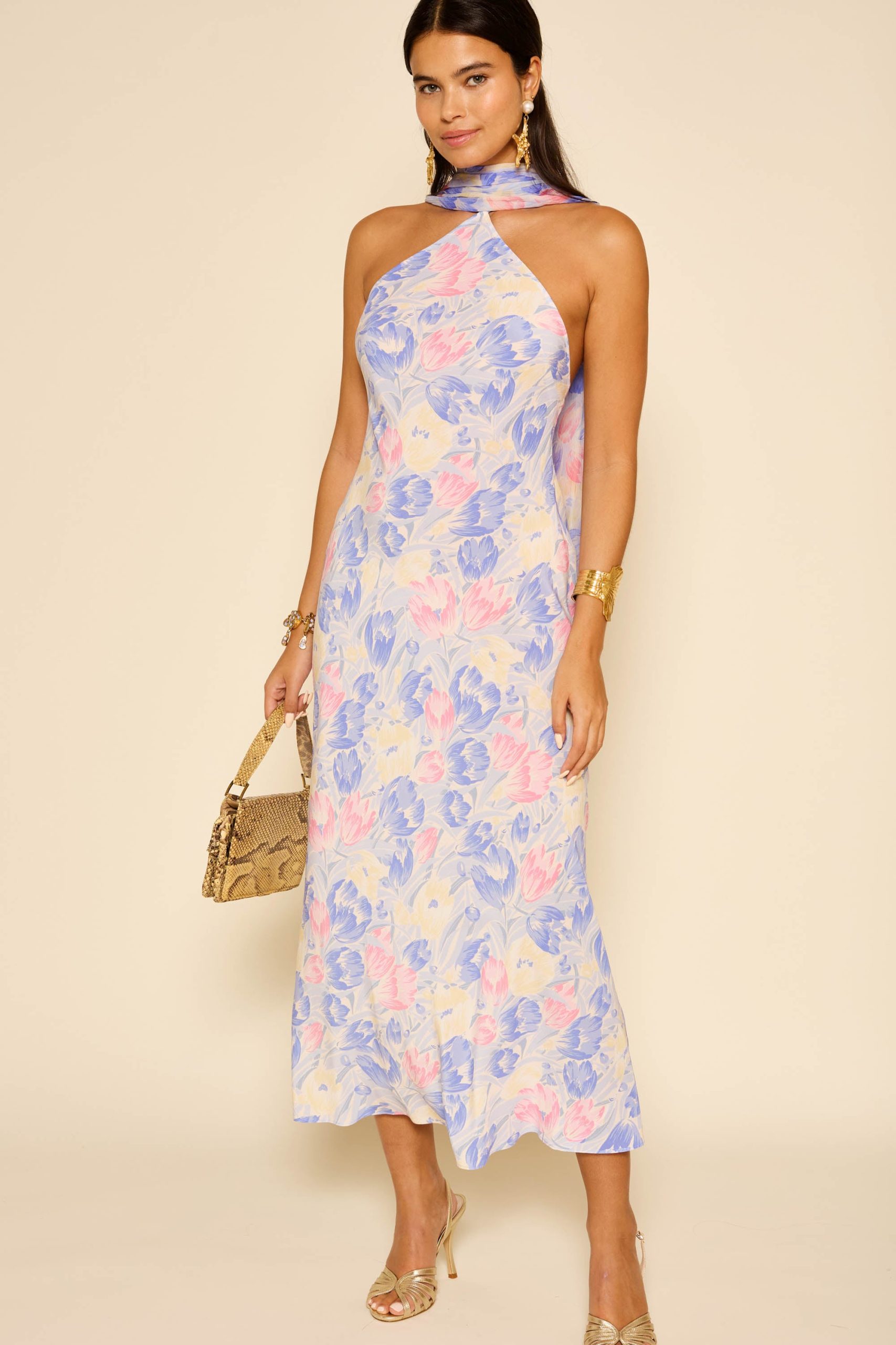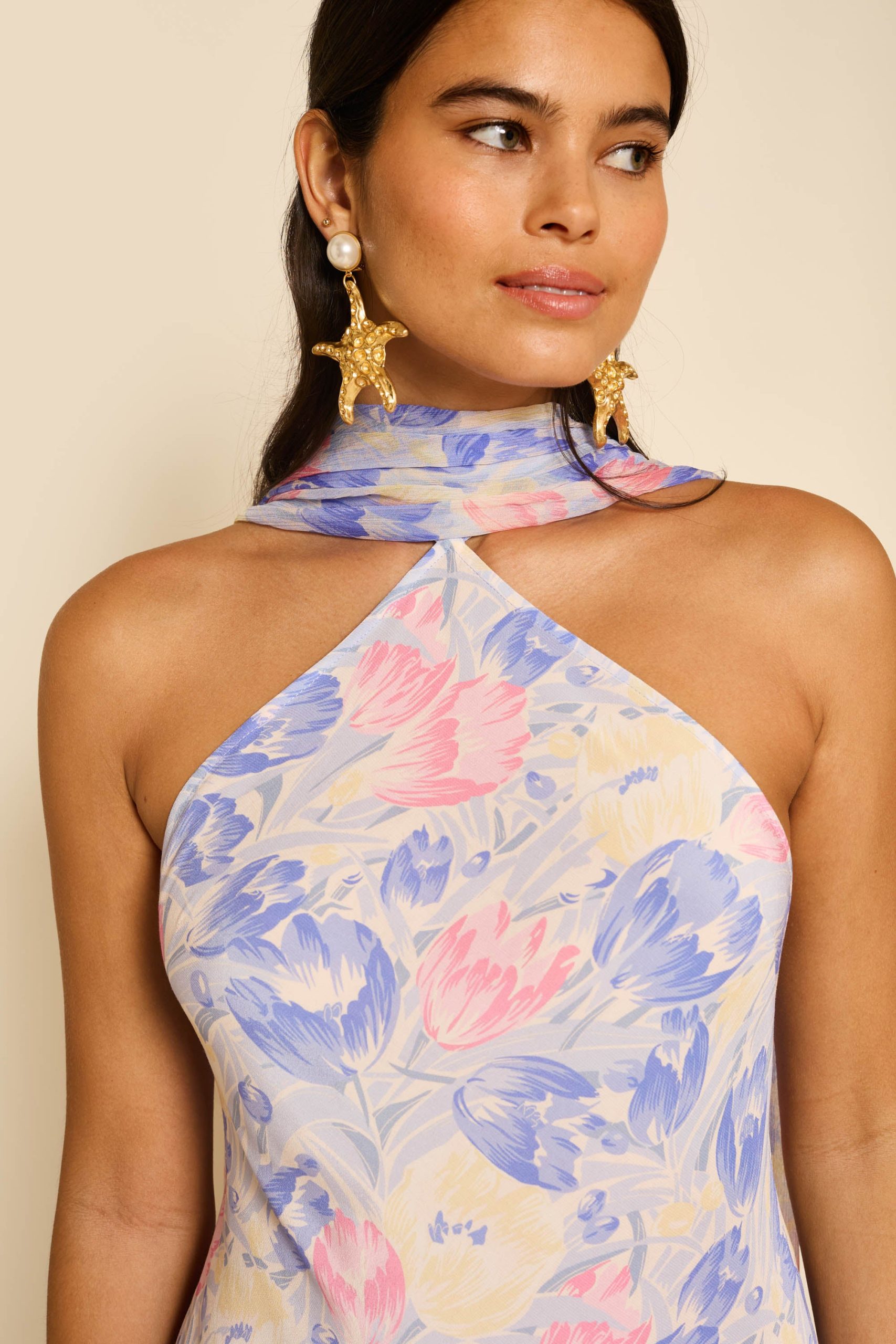 Product detailsDetailsMake an impression in our gorgeous Hayley dress. It’s made from silk crepe de chine and comes with a detachable georgette scarf that looks so striking when it trails down the open back. The popper fastening makes it easy to remove.Fit