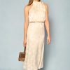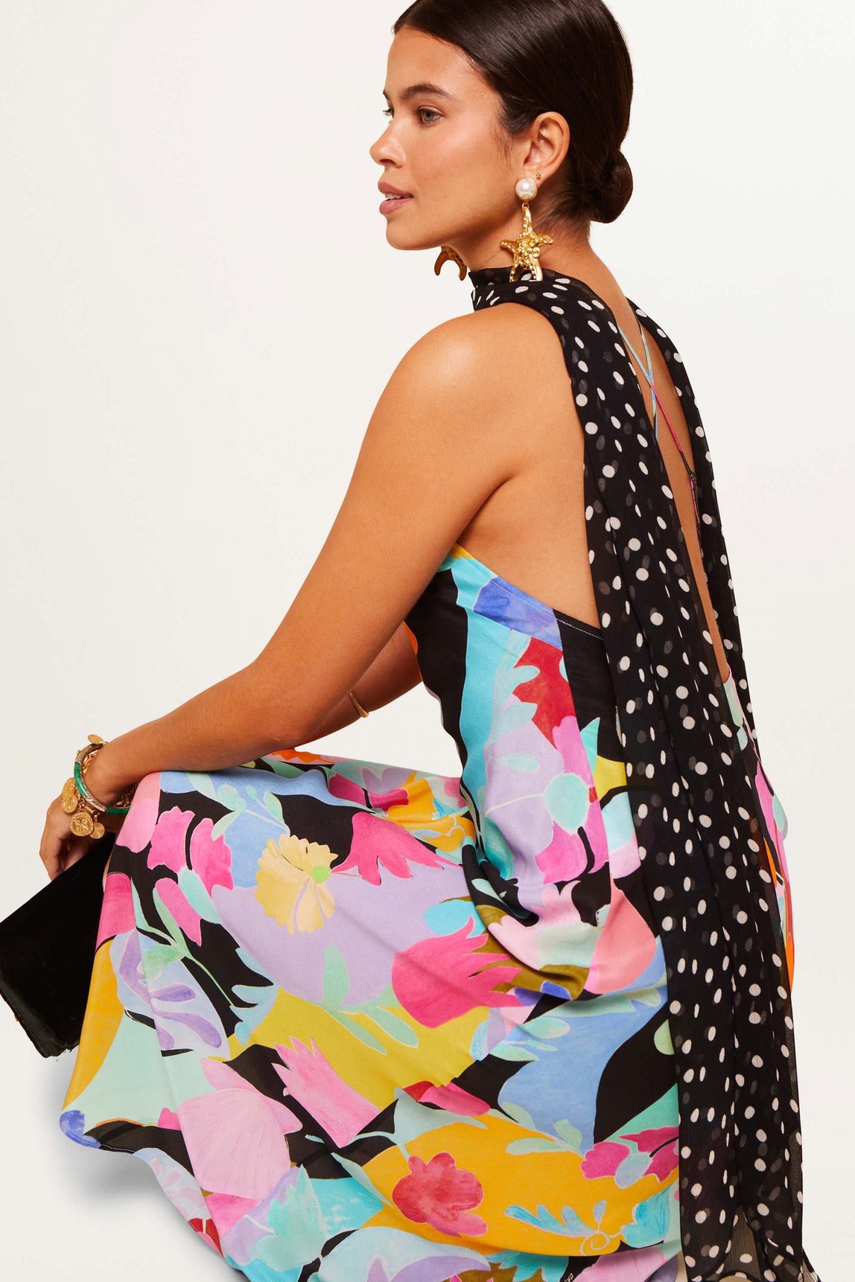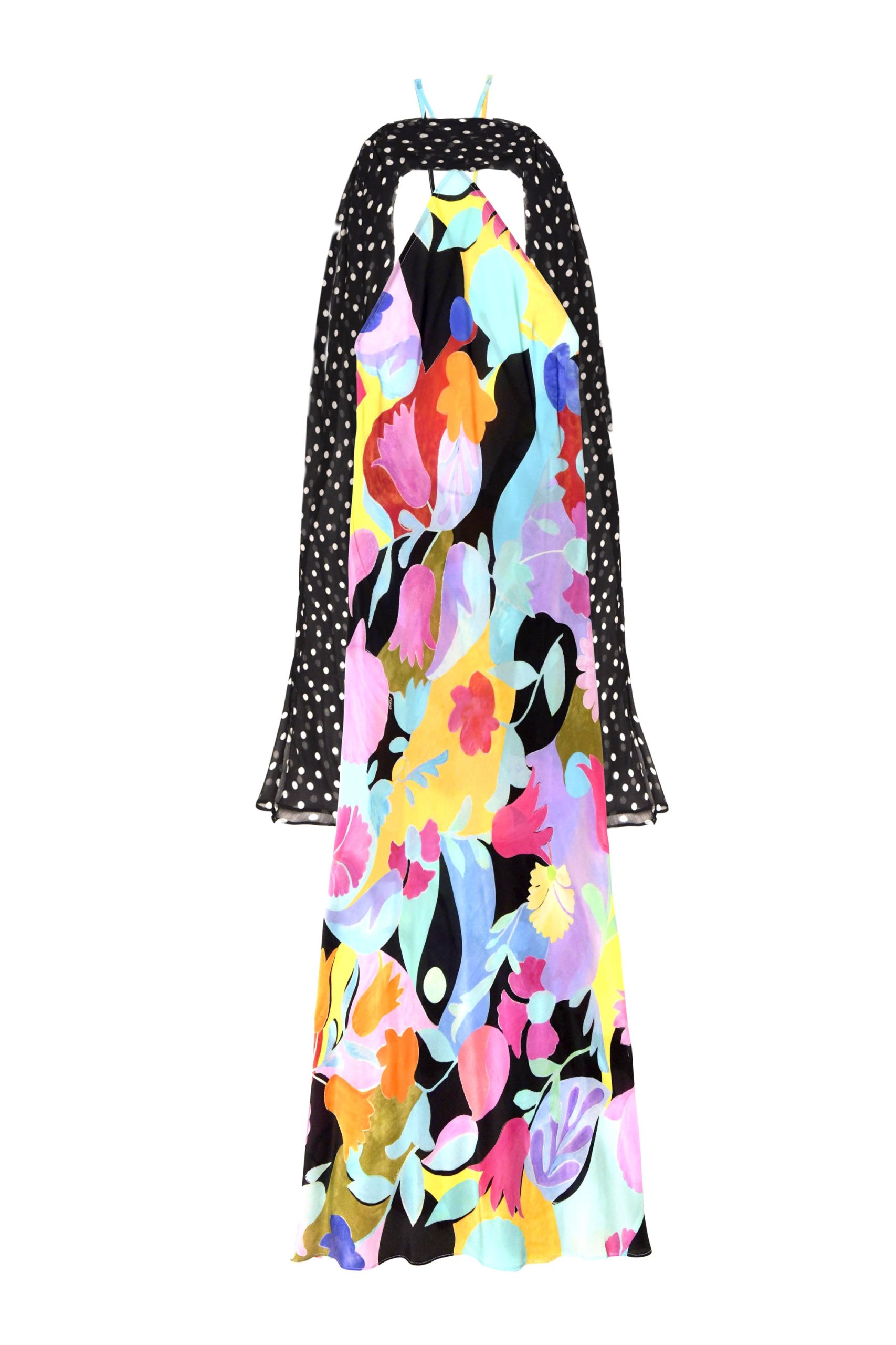 Product detailsDetailsMake an impression in our gorgeous Hayley dress. Its made from silk crepe de chine and comes with a detachable georgette scarf that looks so striking when it trails down the open back. The popper fastening makes it easy to remove.Fit