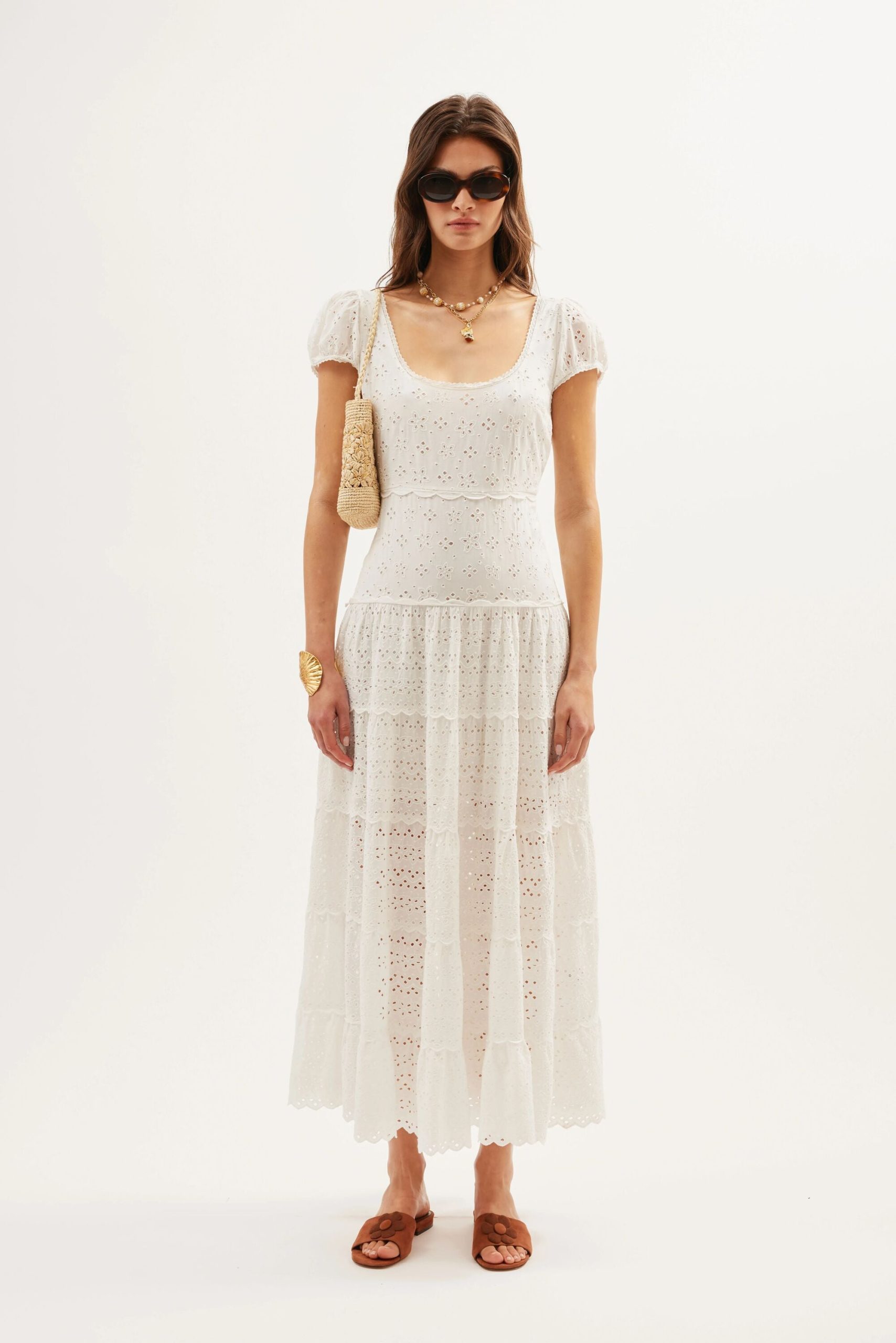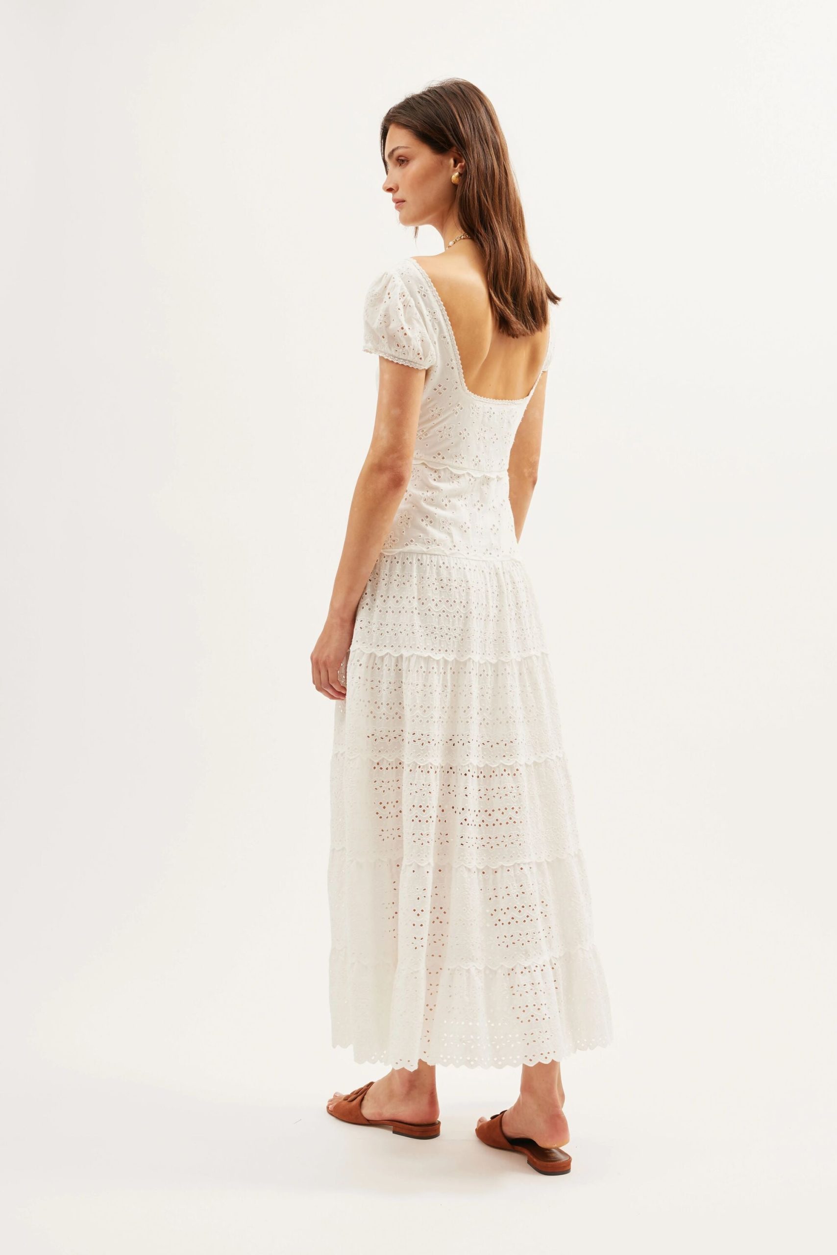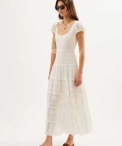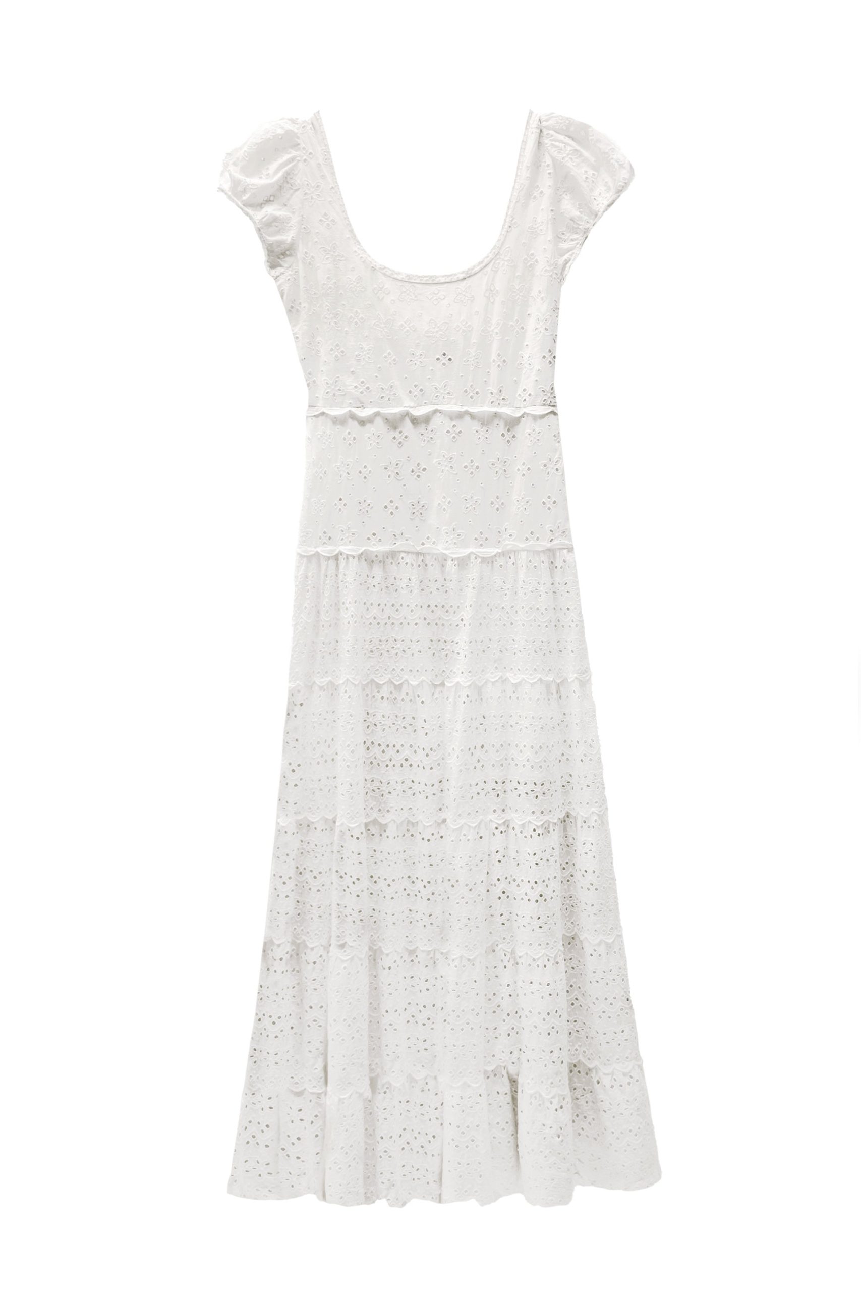 Product detailsDetailsThis scoop-neck Remi dress is a new shape for us, and perfect for summer. It has scalloped ruffles through the skirt and puffed cap sleeves. The broderie anglaise cotton-voile was designed in-house.Fit