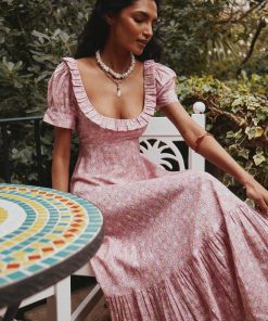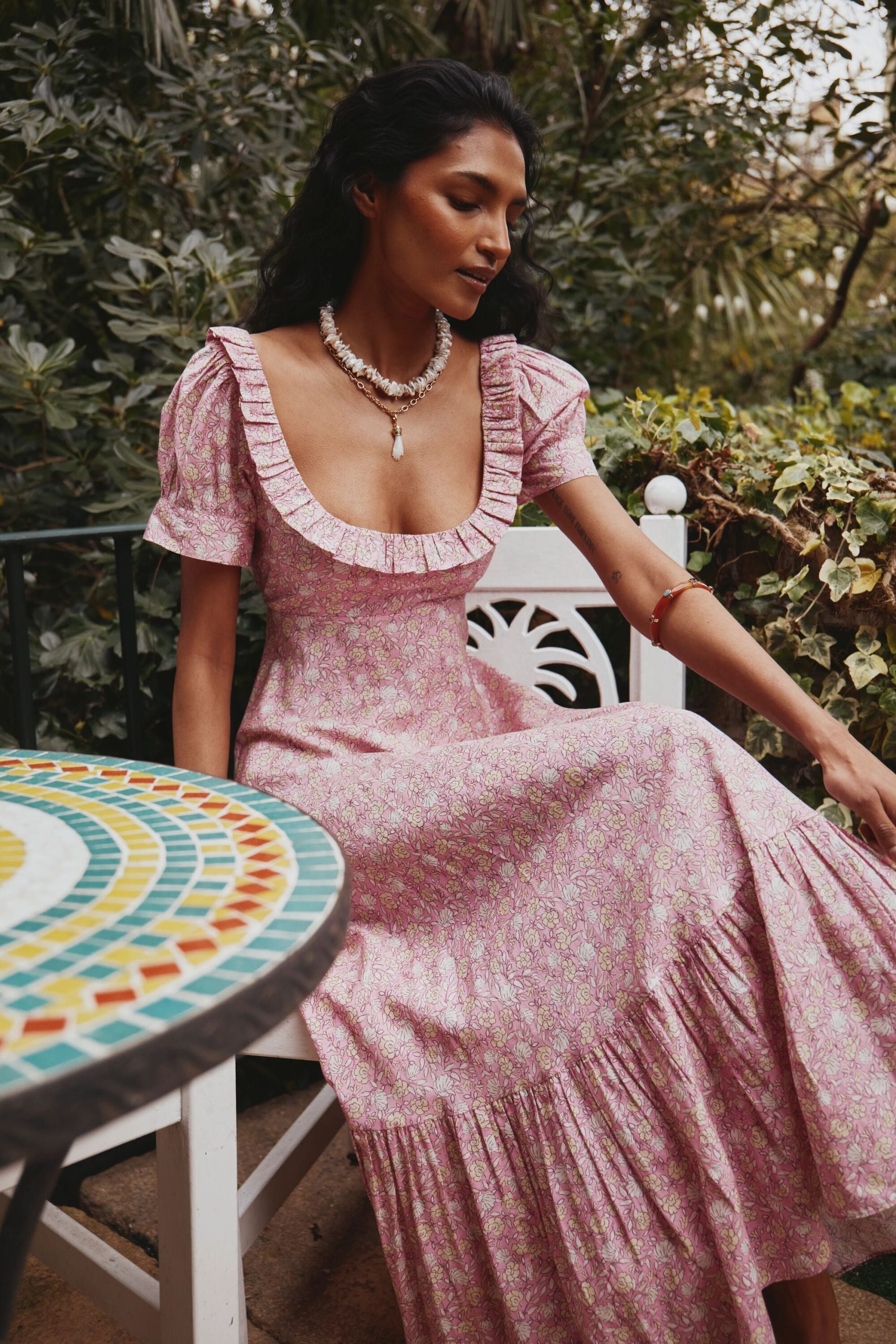 Product detailsDetailsSolana is the perfect vintage prairie dress, with ruffled accents and ties that draw in your waist. We worked with vintage samples to get the shape and fit just right.Fit