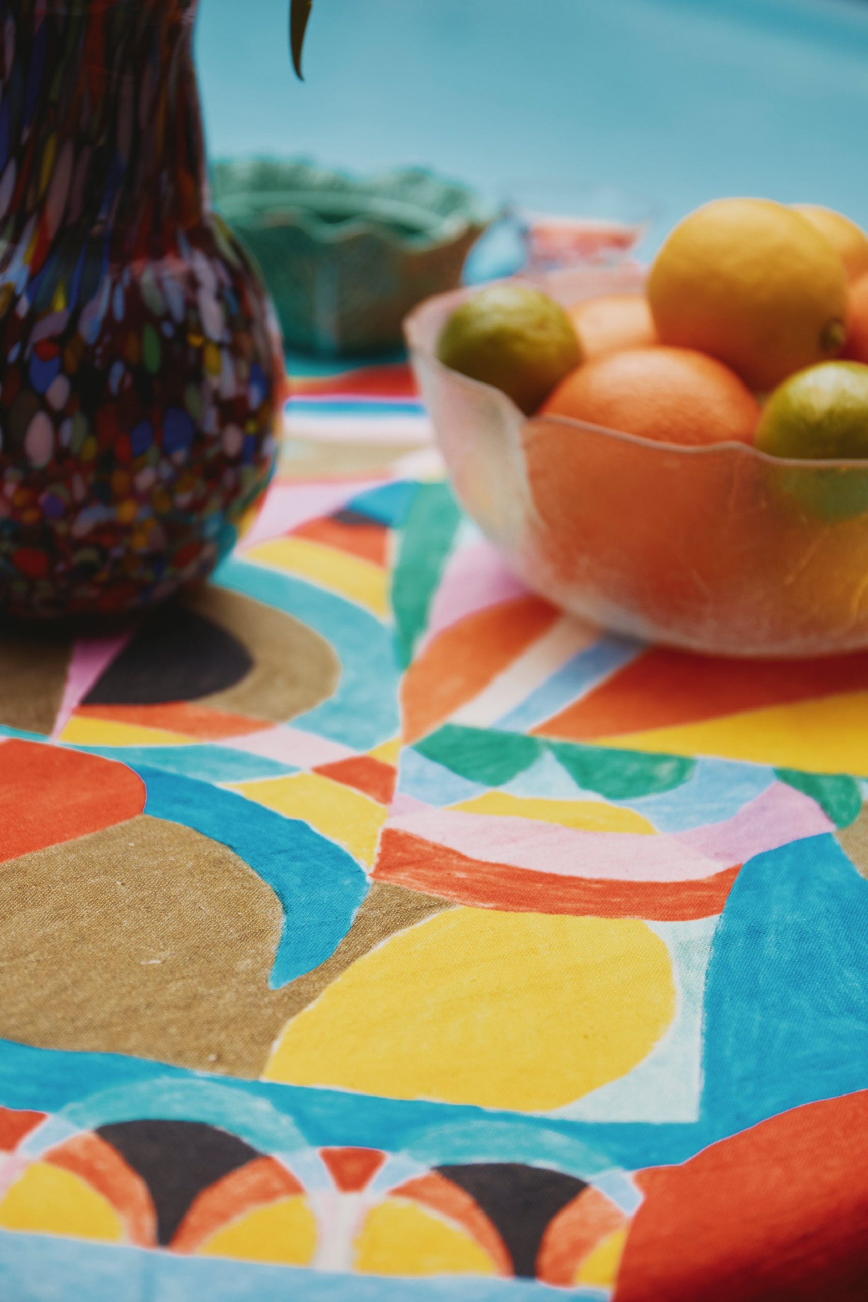 Product detailsDetailsThis linen and cotton-blend Zebe tablecloth makes a striking addition to any kitchen or dining room. The scale shows off the hand-sketched motif beautifully, like a work of art. We have coordinating napkins, too.Fit