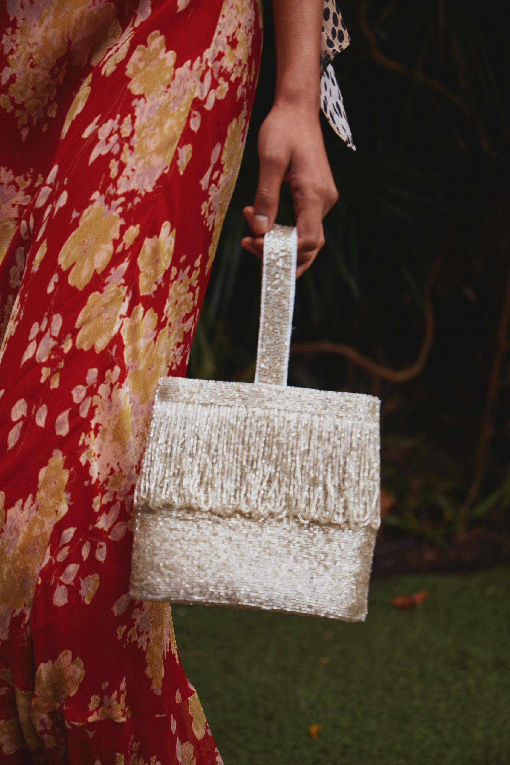 Product detailsDetailsA beautiful occasion outfit deserves a bag to match – that’s why we designed Zenni. It’s covered with shimmering beads and sits neatly over the crook of your arm to keep your hands free for a drink. The silk-lined interior is big enough to fit your phone and makeup essentials and snaps shut to keep them safe.Fit
